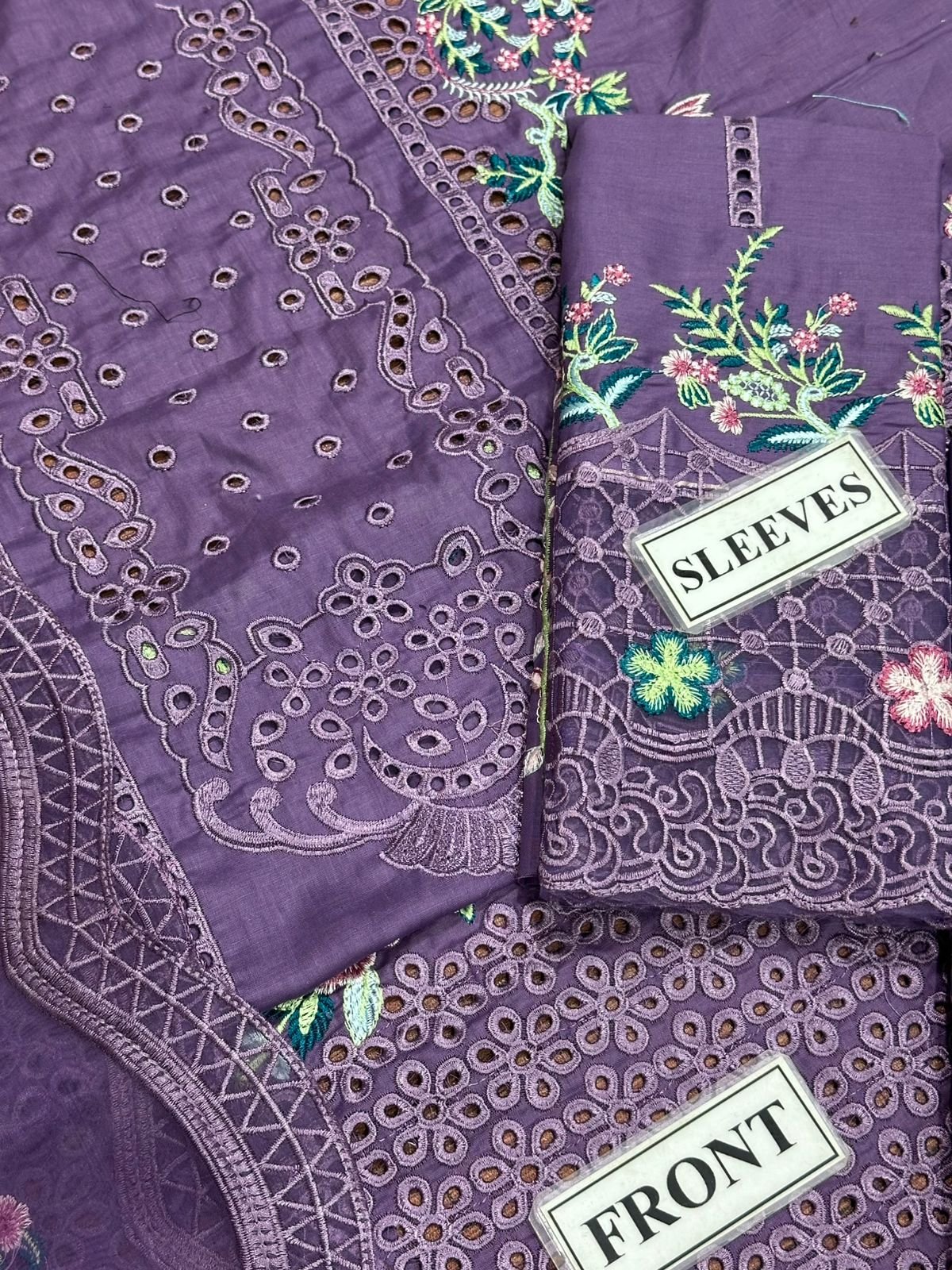 Elegant Luxury Work Unstitched summer Lawn Cotton Purple Dress