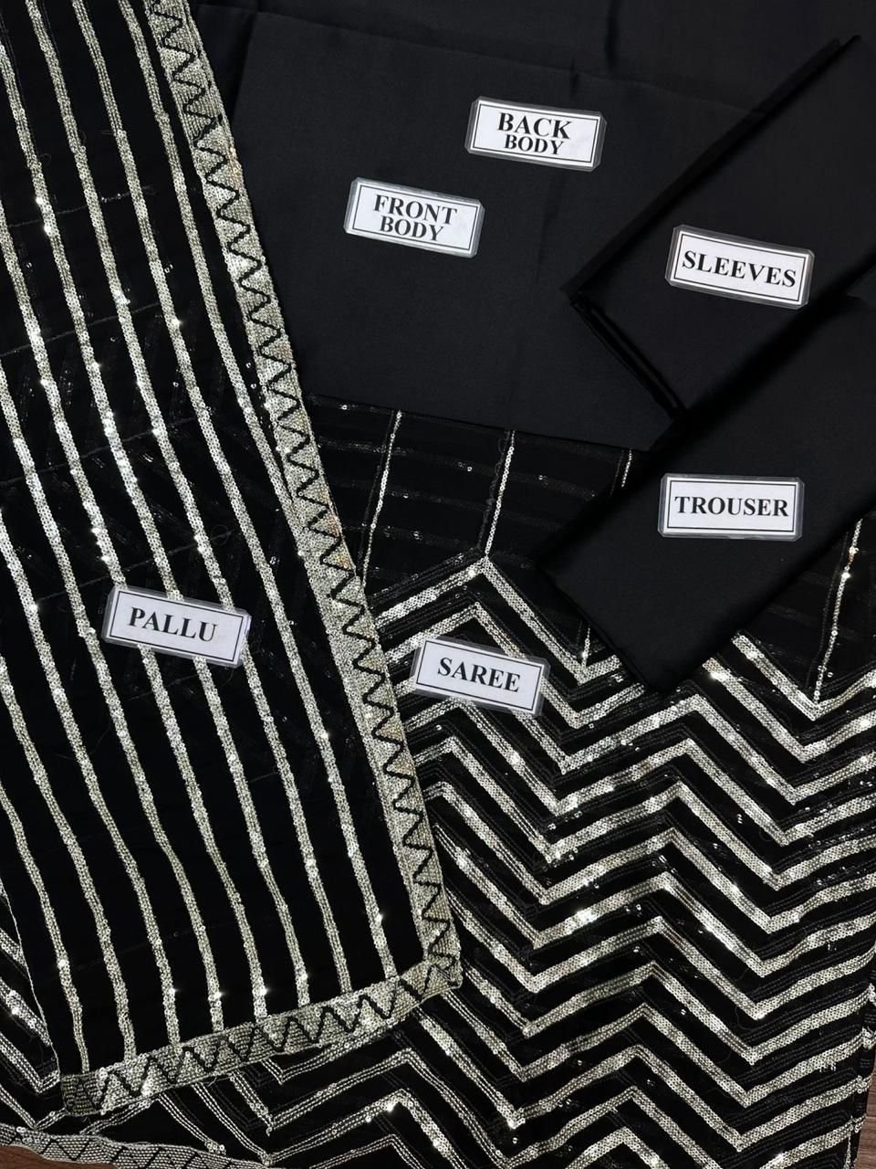 Elegant Luxury Work Unstitched Wedding Partywear Black Saree Dress Nikha Walima Engagement Mehndi Mayon Dress