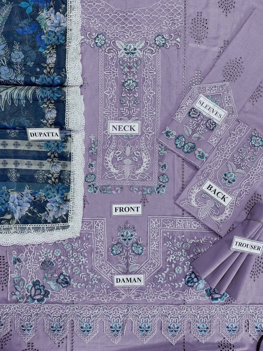Elegant summer Luxury Chikankari Embroidery Lawn Cotton Unstitched purple Dress