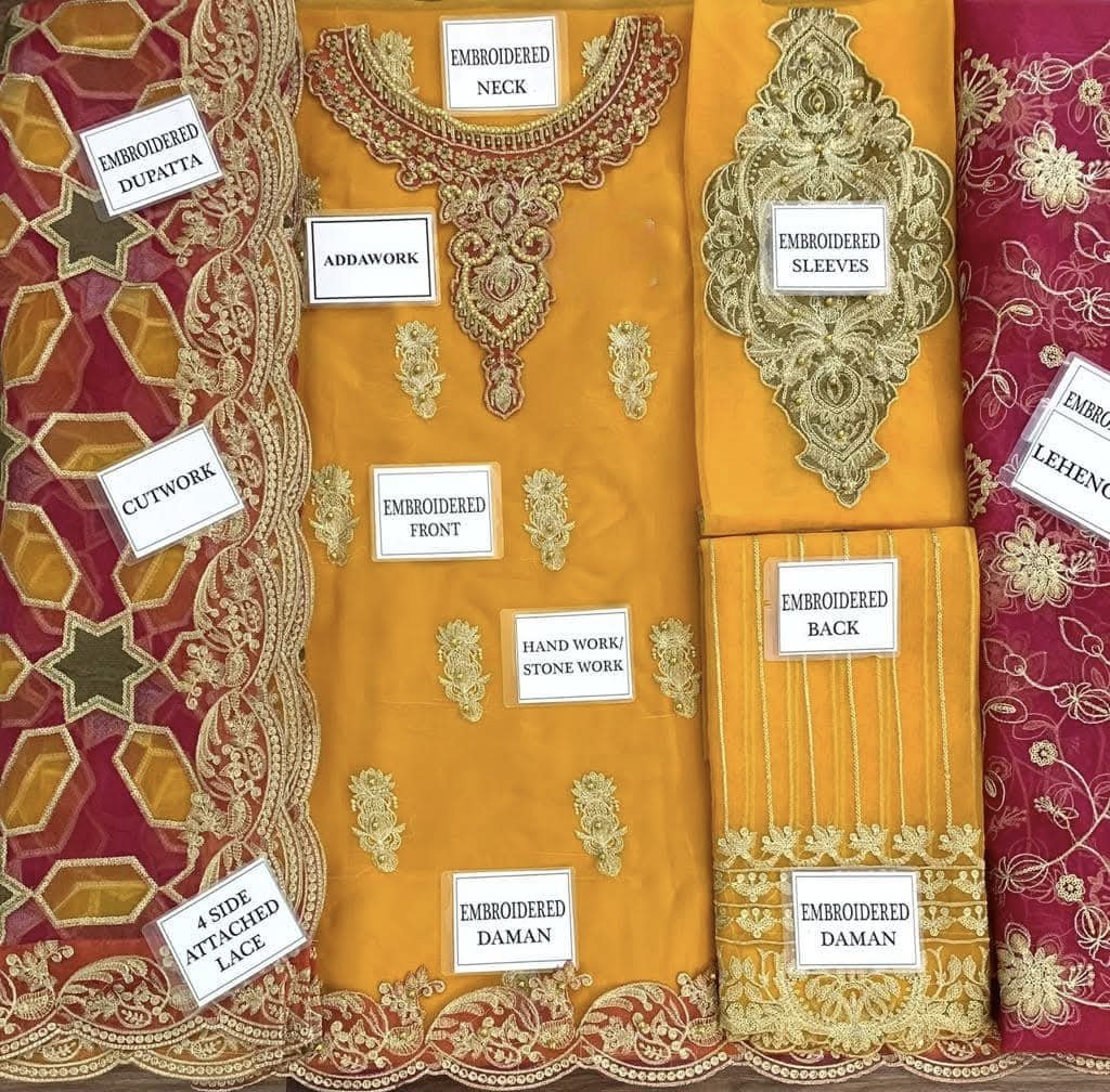 Be the first to review “Elegant Luxury Work Unstitched Wedding Partywear Dress Nikha Walima Engagement Mehndi Mayon Yellow Dress” Cancel reply