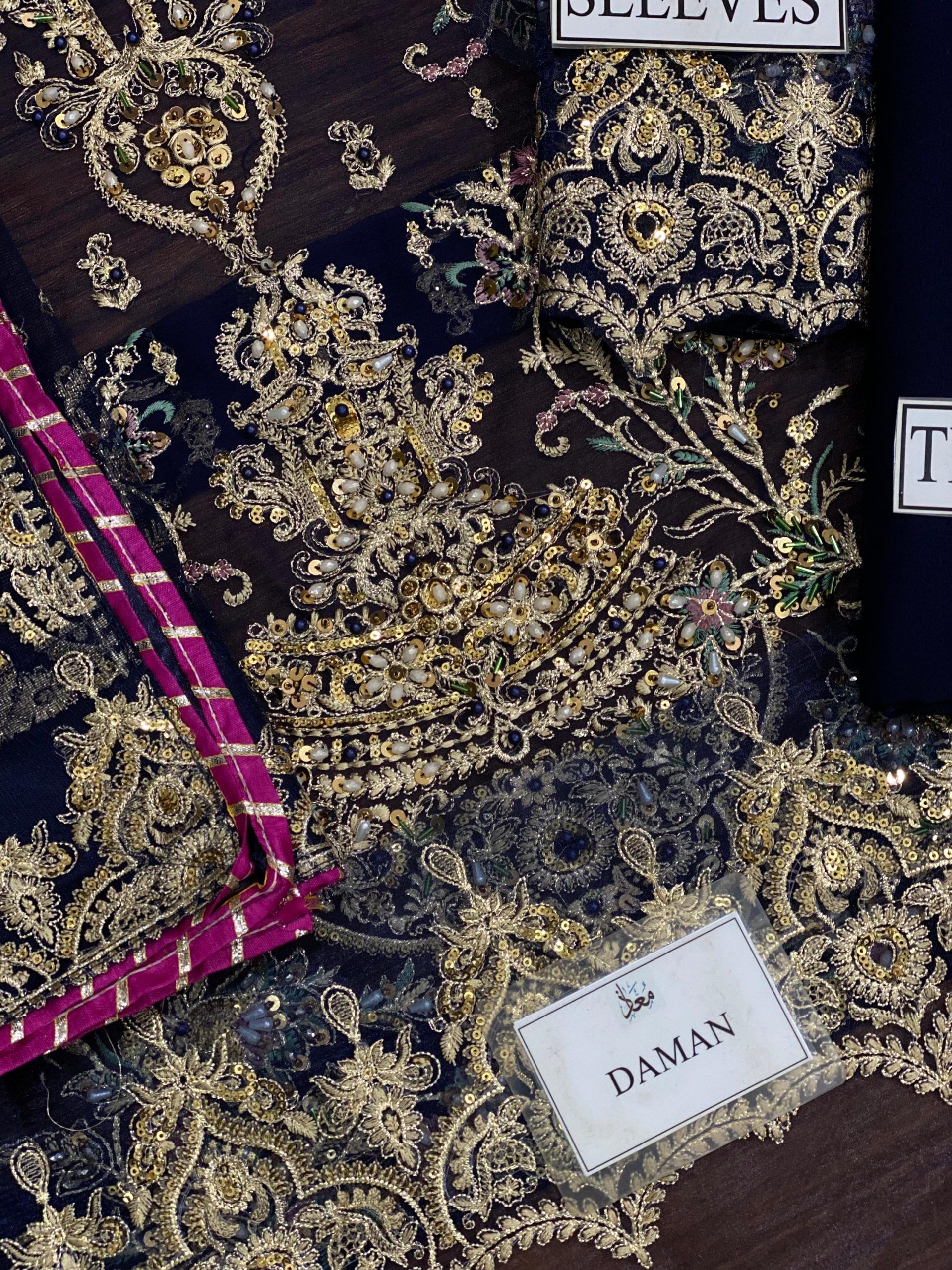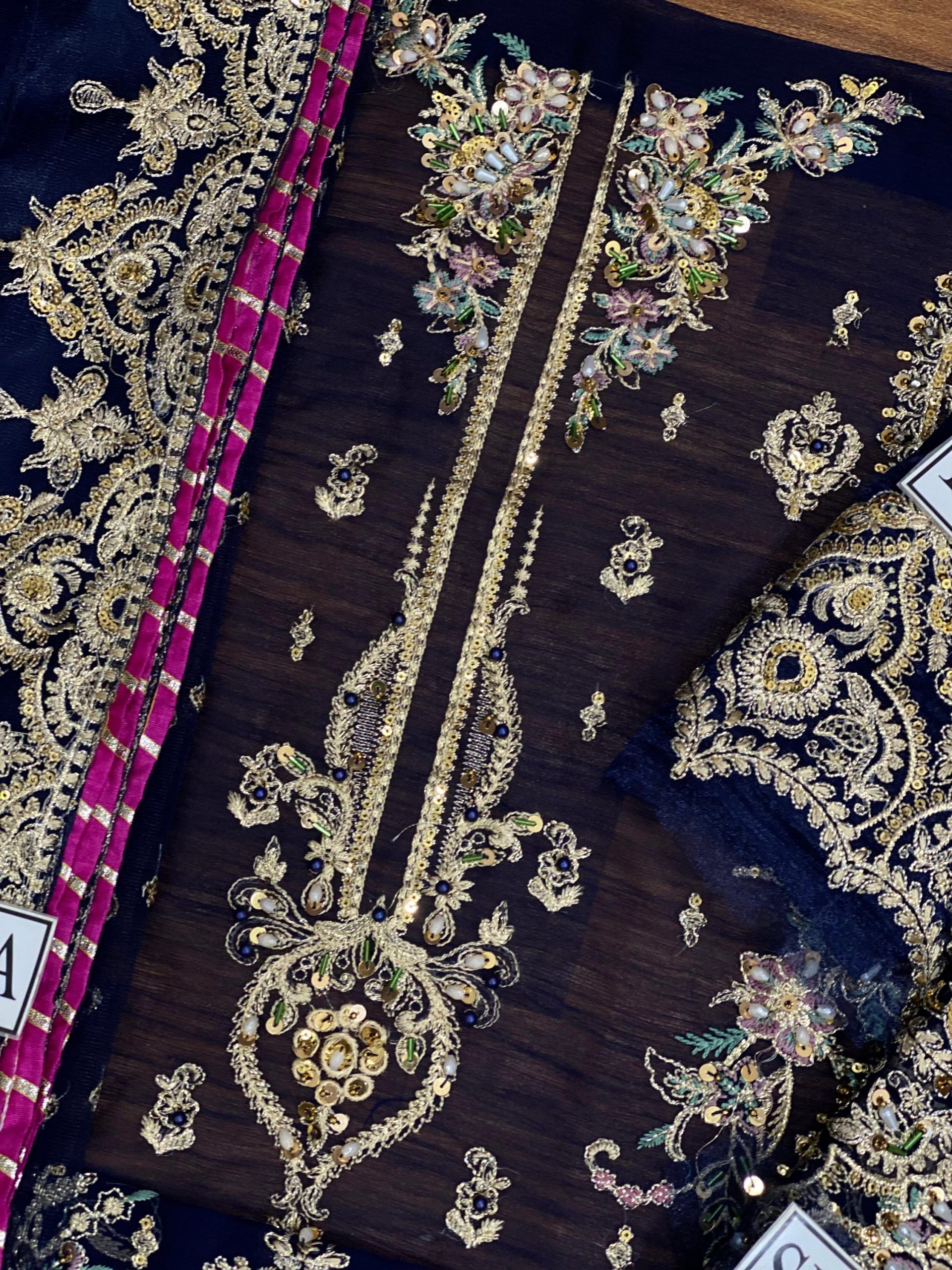 Elegant Luxury Work Unstitched Wedding Partywear Navy Blue Dress Nikha Walima Engagement Mehndi Mayon Dress