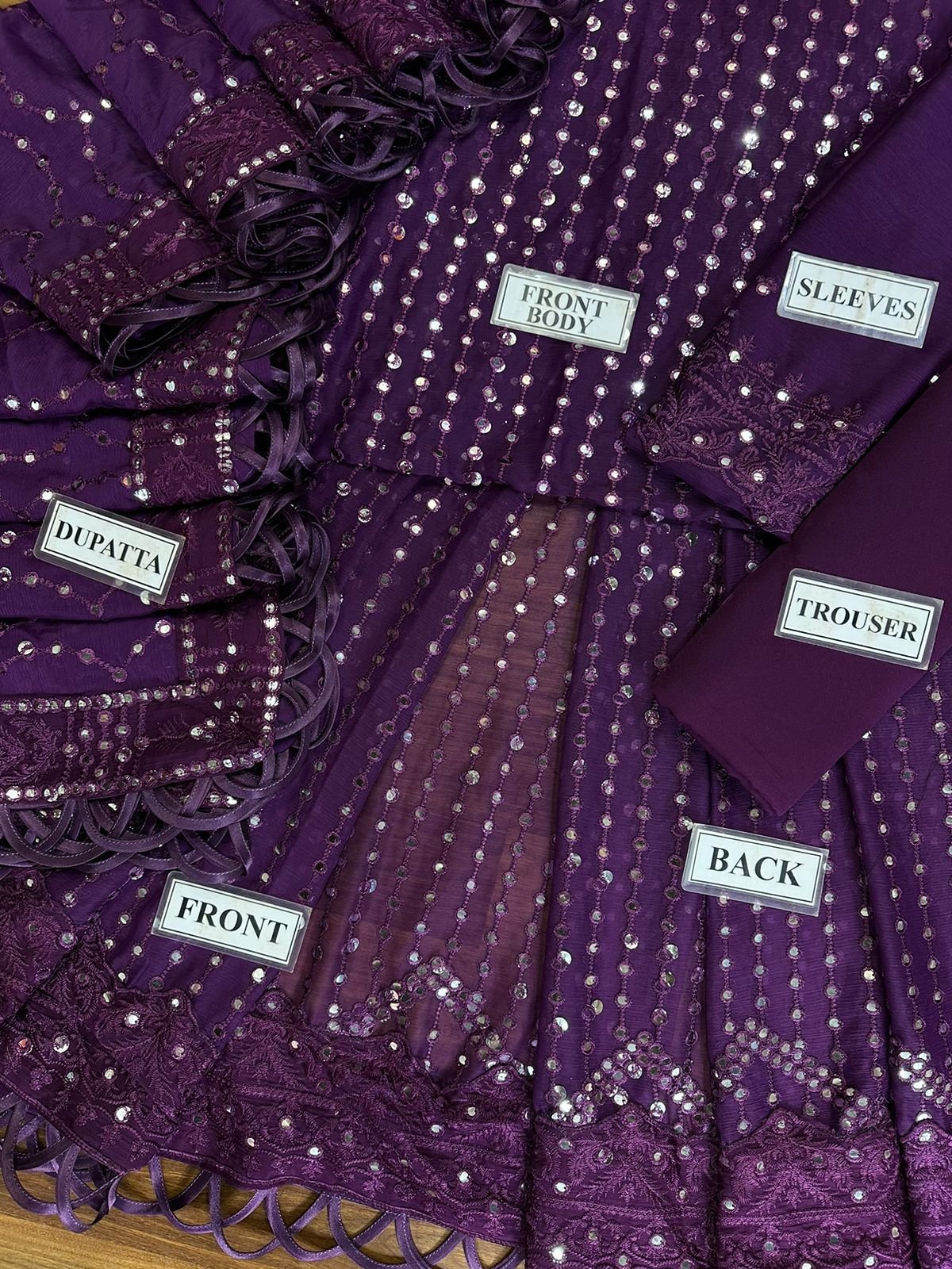 Front Back Body Full Embroidered With 9 MM Sequence Work