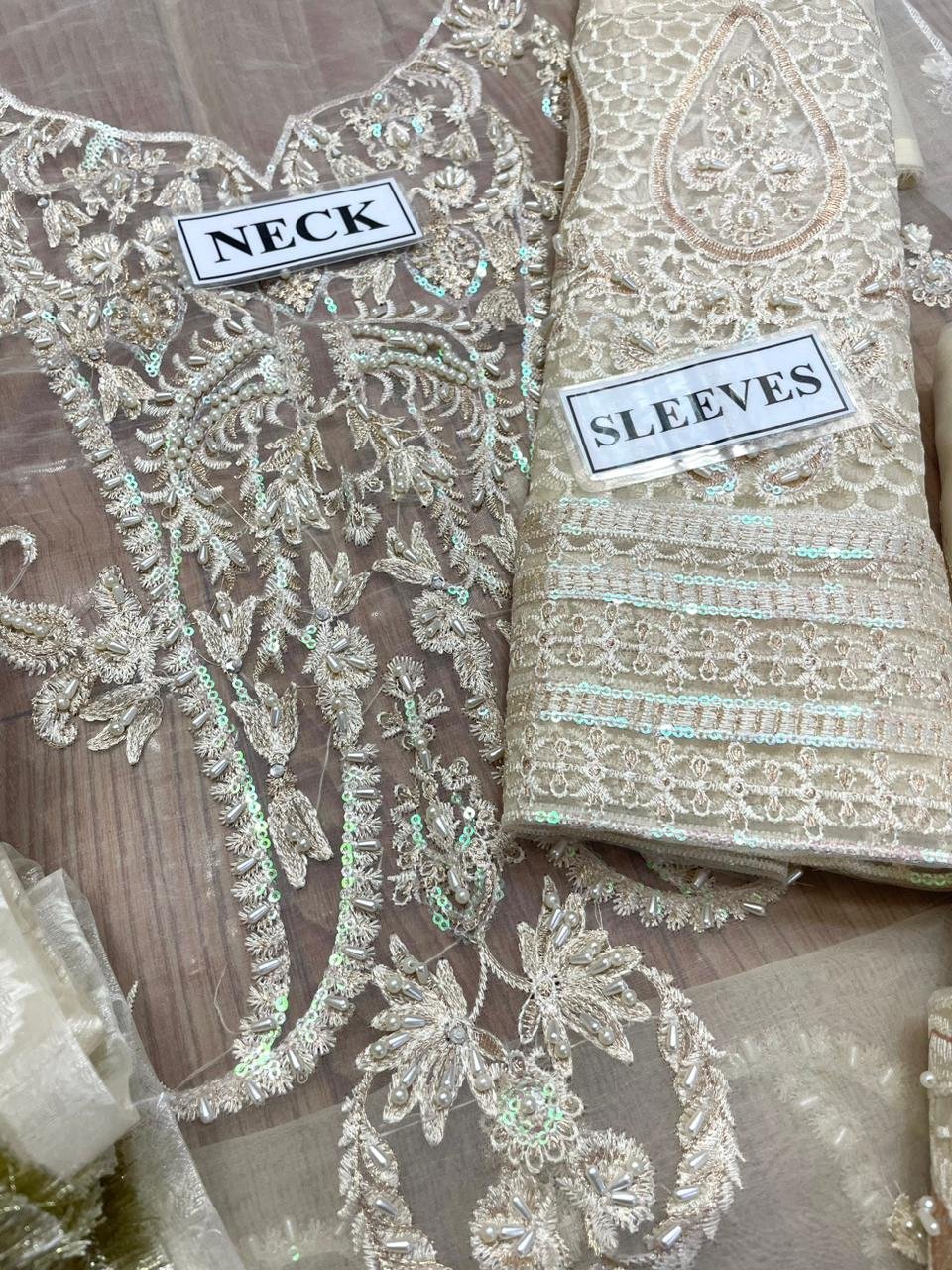 Sleeves Fully Embroidered With Handwork Sequins Work And Crystal Adda Work