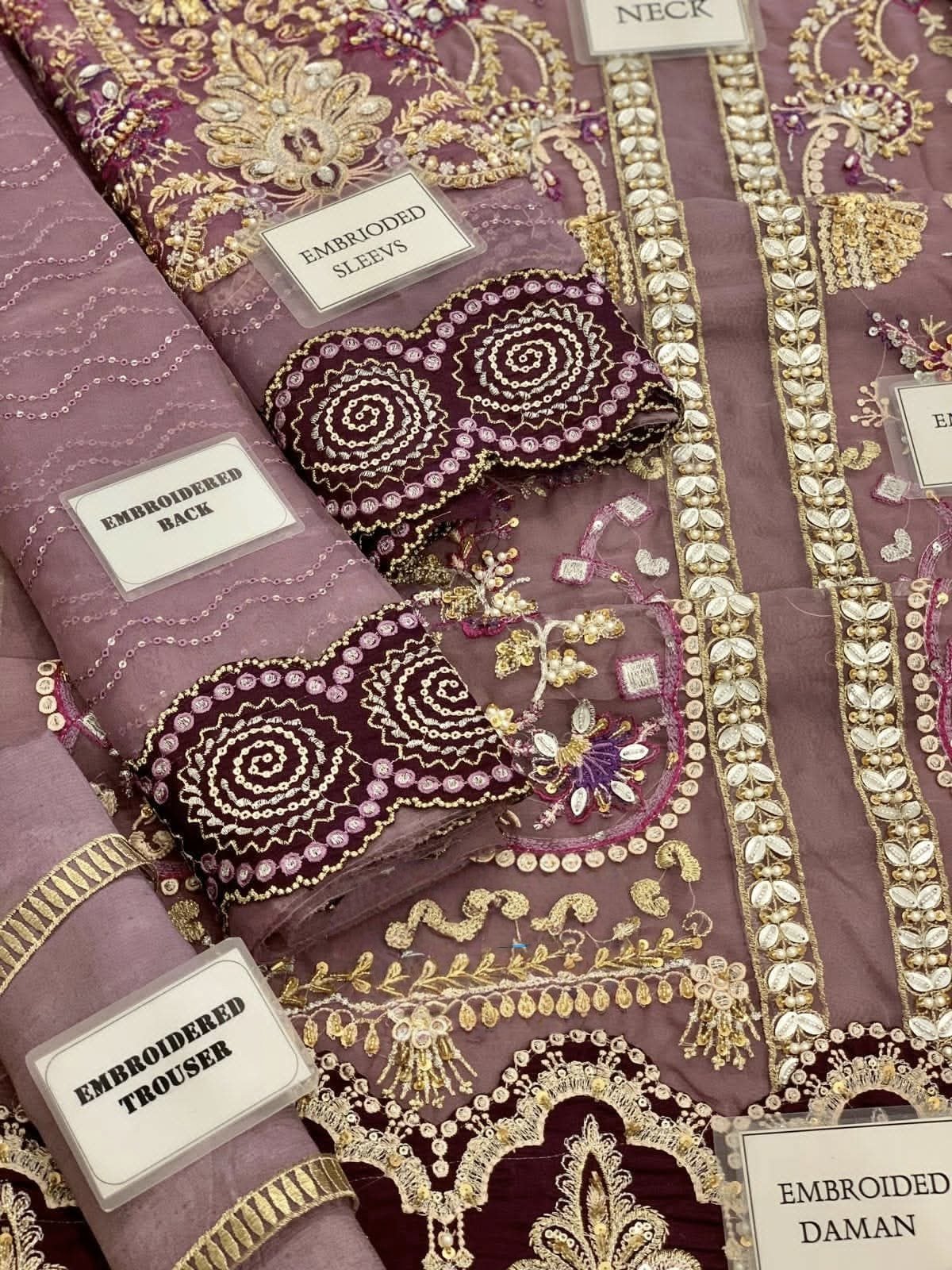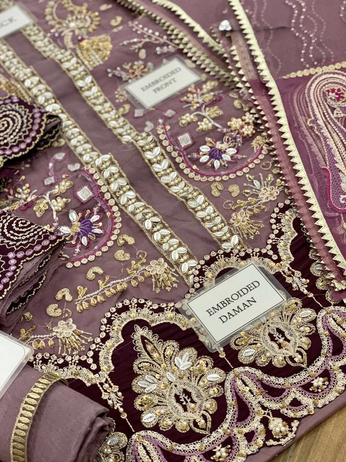 organze fully heavy embroidered spengle work back with heavy embroidered spengle work back daman boarder with embroidered spengle work back chak lac