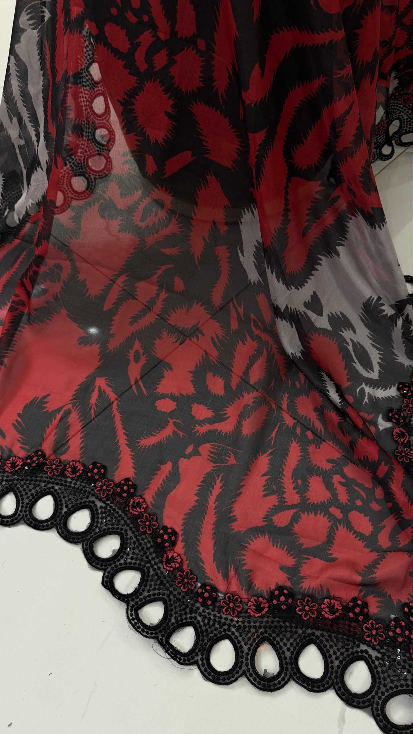 • Digital Printed Silk Dupatta With 4 Sided Cutwork Embroidered Patch Attatched