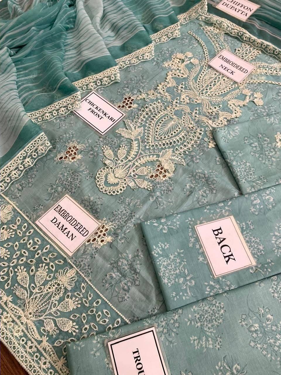 Printed Pure lawn front with fully heavy embroidered front with heavy embroidered necline and daman boarder