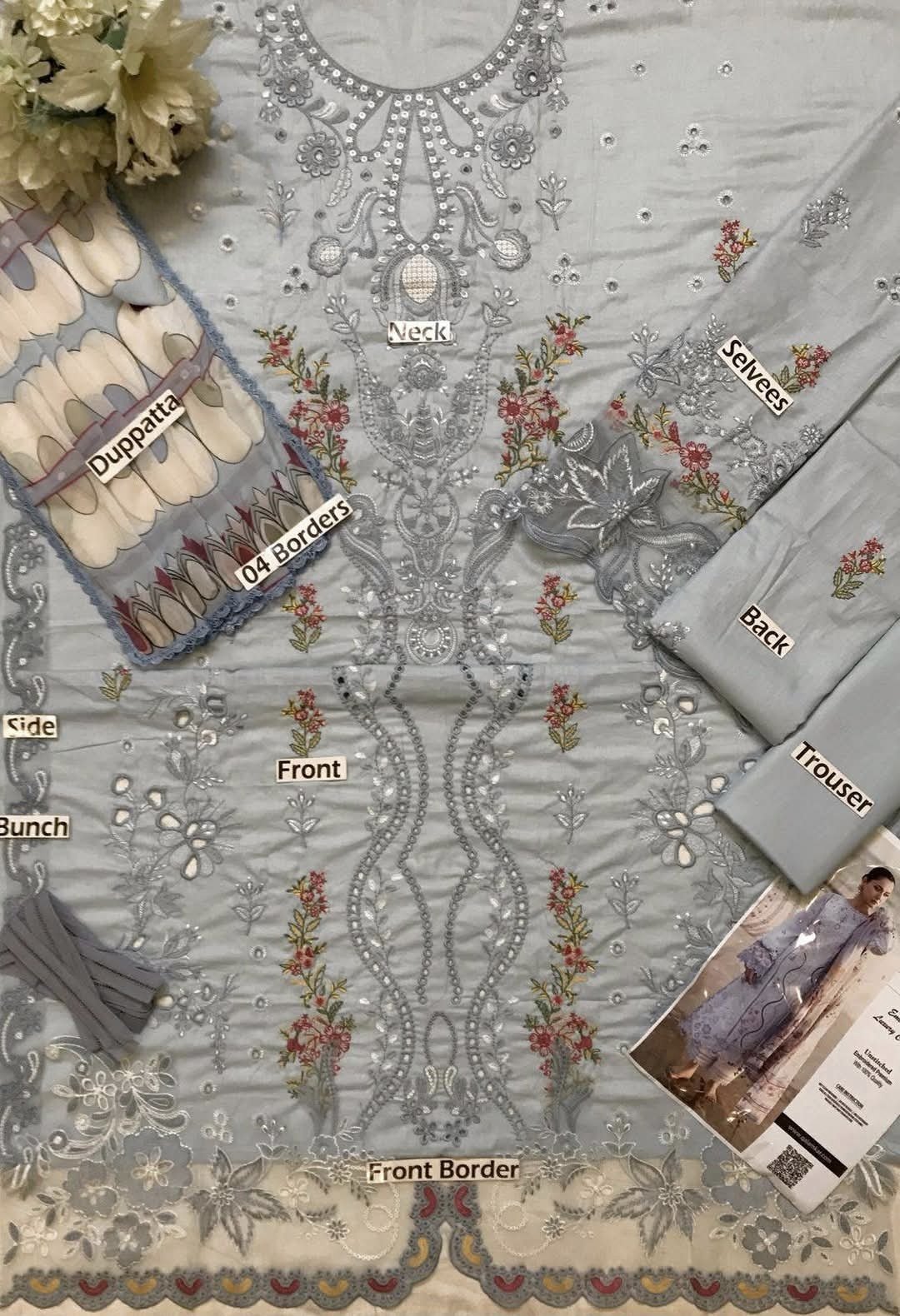PREMIUM LAWN FULLY HEAVY ALTERNET CHICKEN KARI EMBROIDERED FRONT ALONG WITH HEAVY EMBROIDERED FRONT PATCH with center lace given seperately
