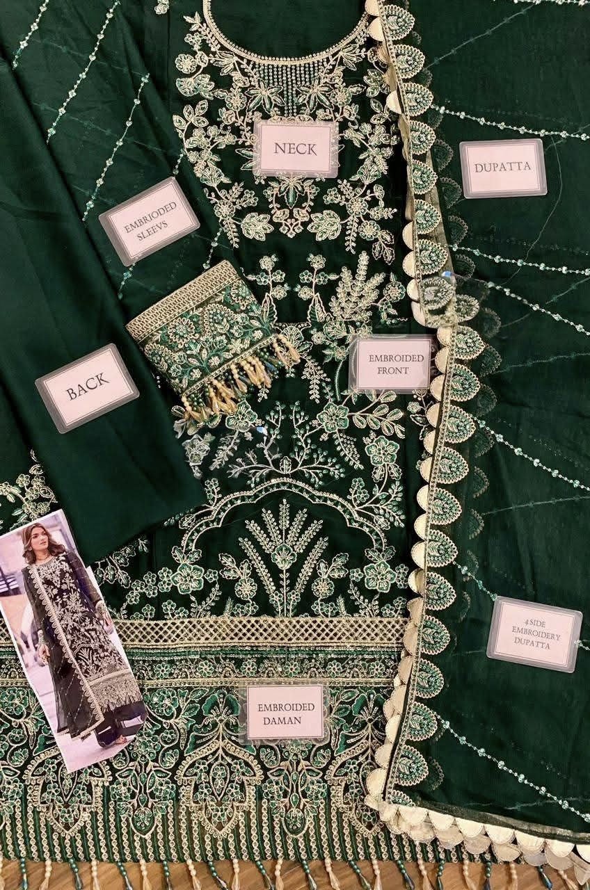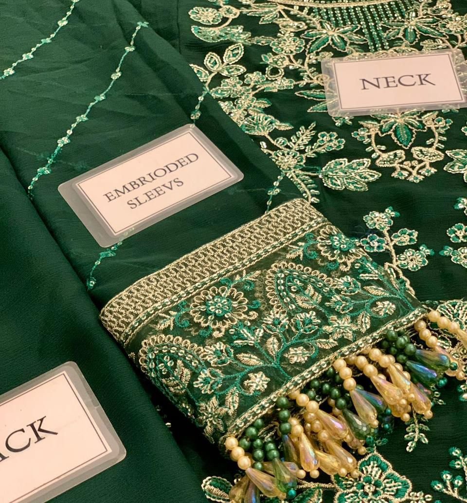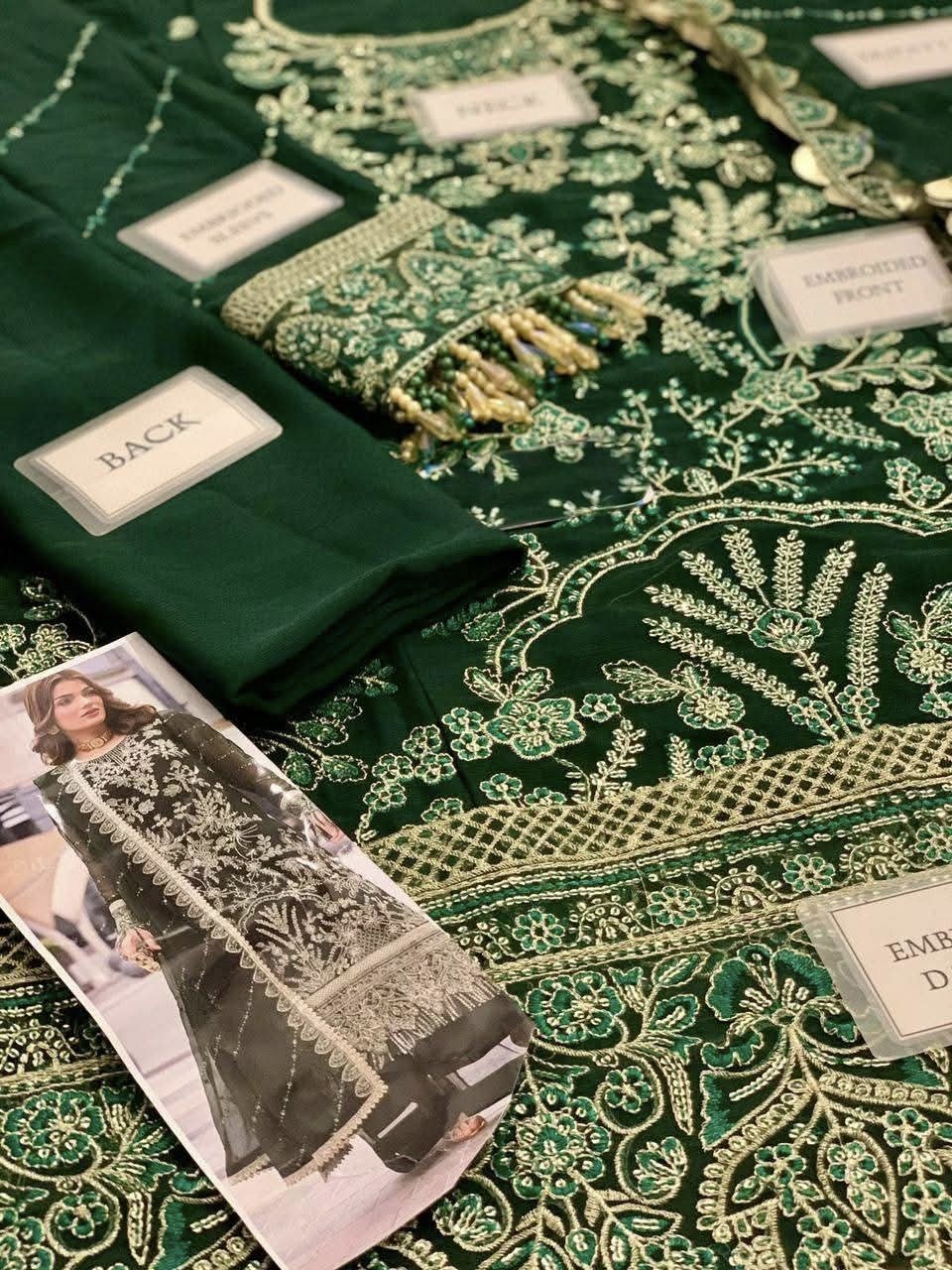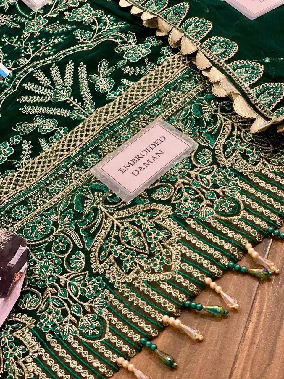 Elegant Luxury Work Unstitched Wedding Partywear Green Dress Nikha Walima Engagement Mehndi Mayon Lehnga Dress