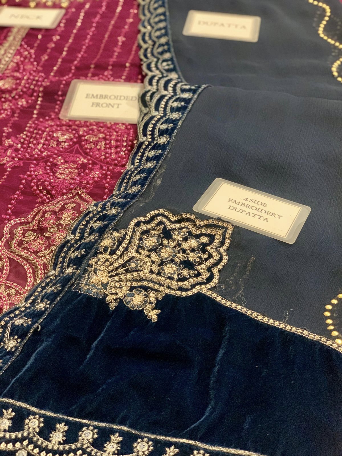 chiffon mukaish duphta with 4 side velvet embroidered spengle work lace attach with 2 side velvet embroidered spengle work pallou boader attach