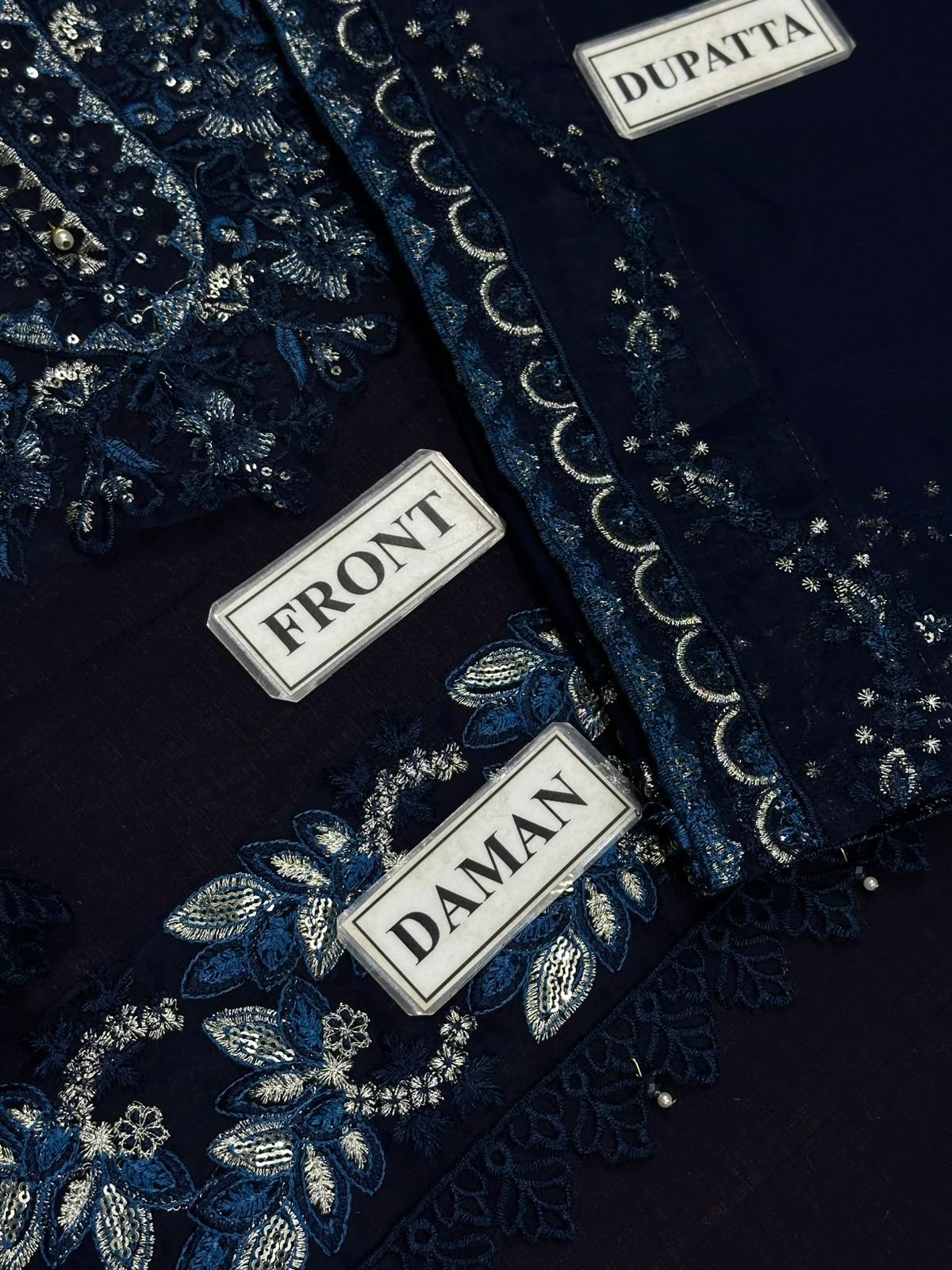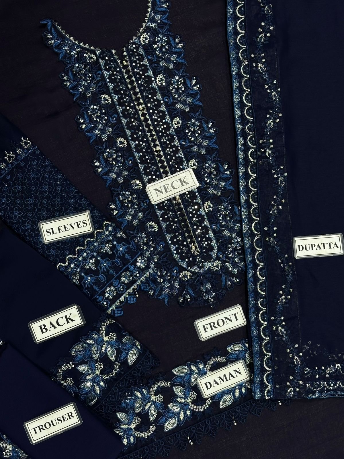 Be the first to review “Elegant Luxury Work Unstitched Wedding Partywear navy blue Dress Nikha Walima Engagement Mehndi Mayon Dress”