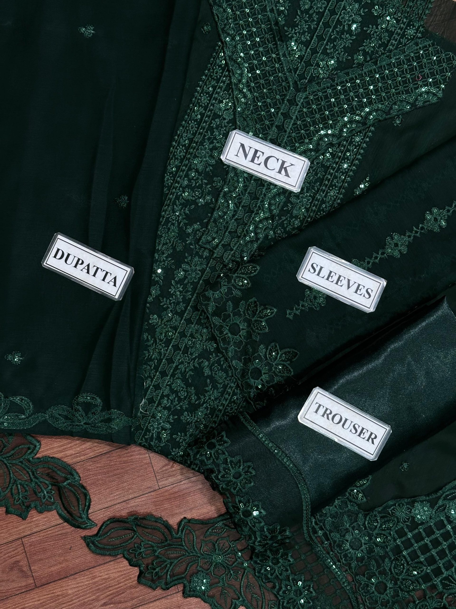 Elegant Luxury Work Unstitched Wedding Partywear Green Dress Nikha Walima Engagement Mehndi Mayon Dress