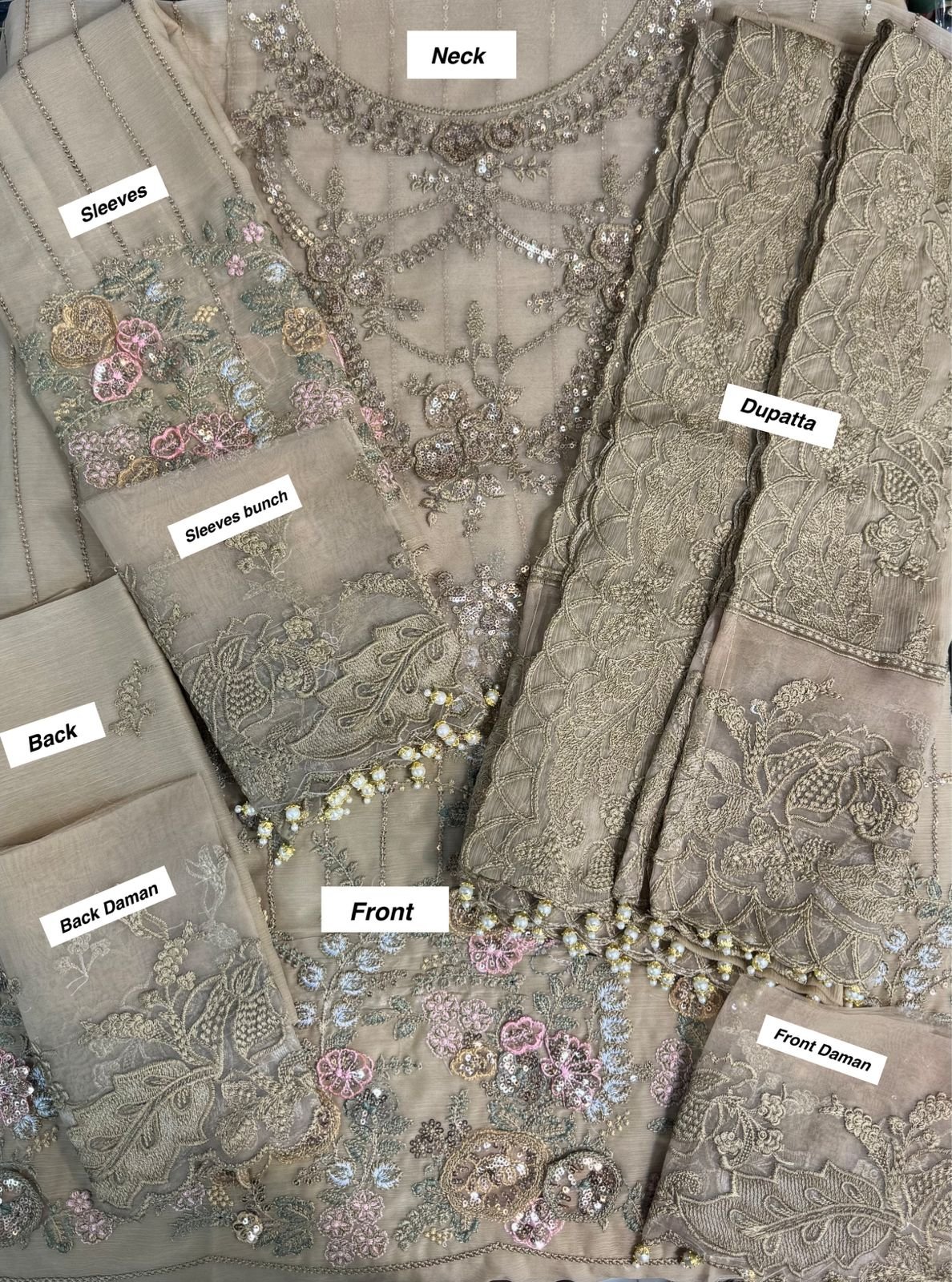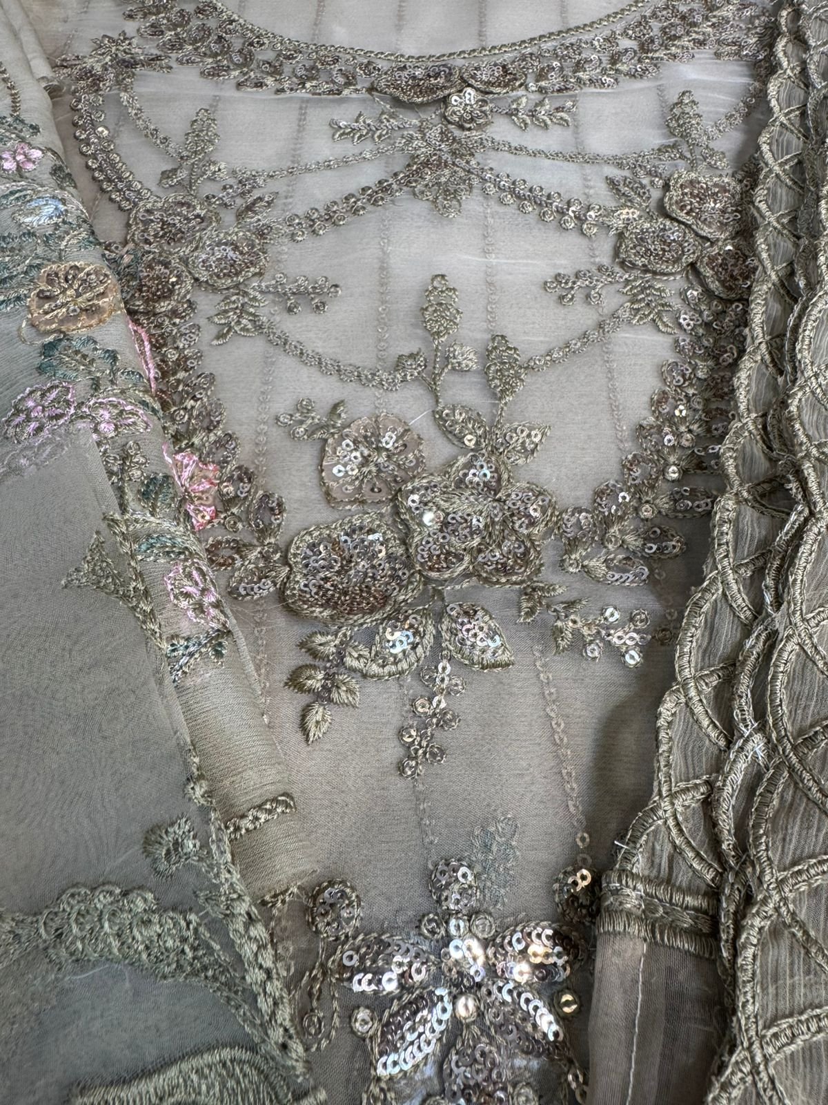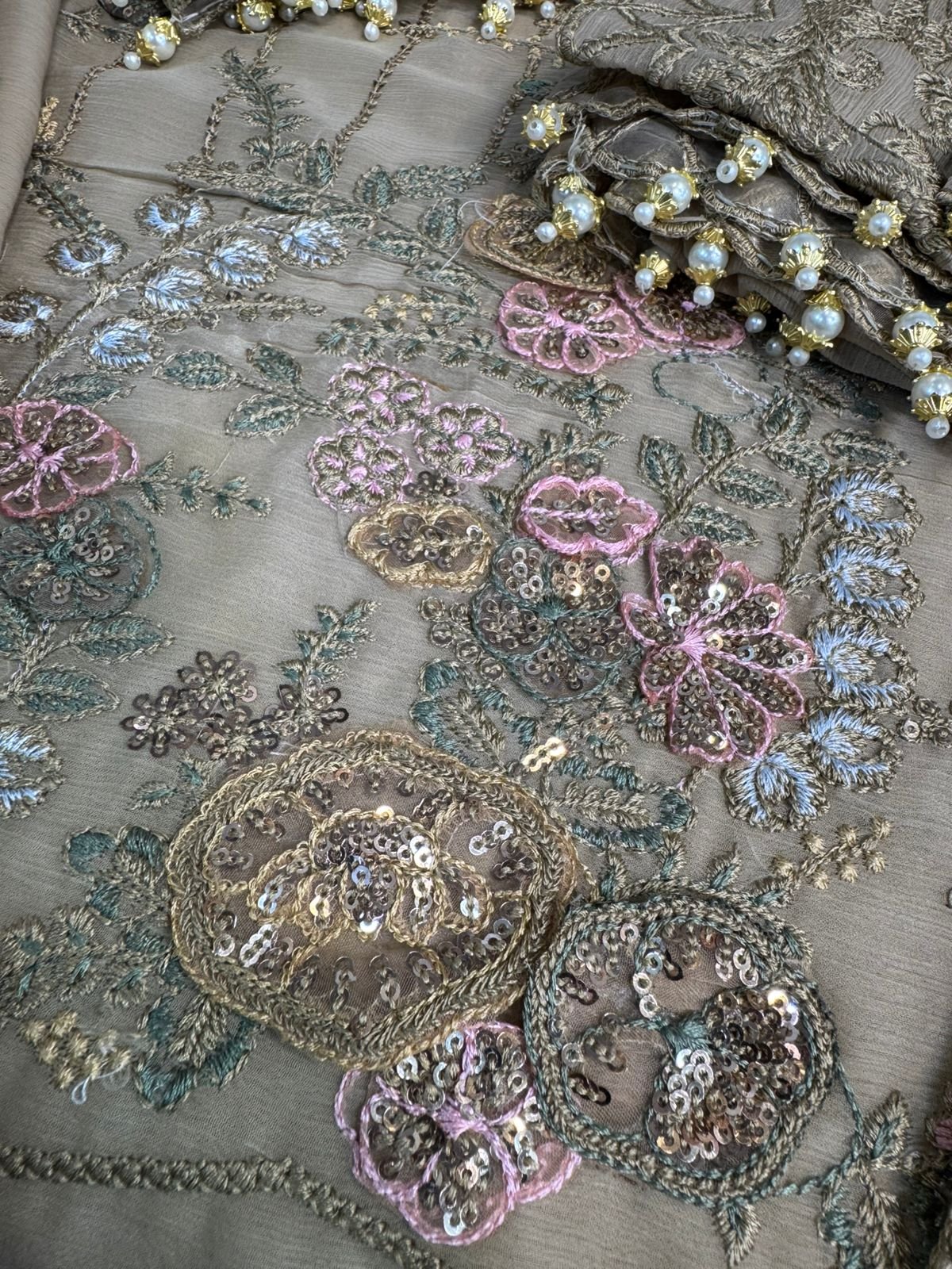 Heavy Embroidered Front with sequence work and 3d flowers attached