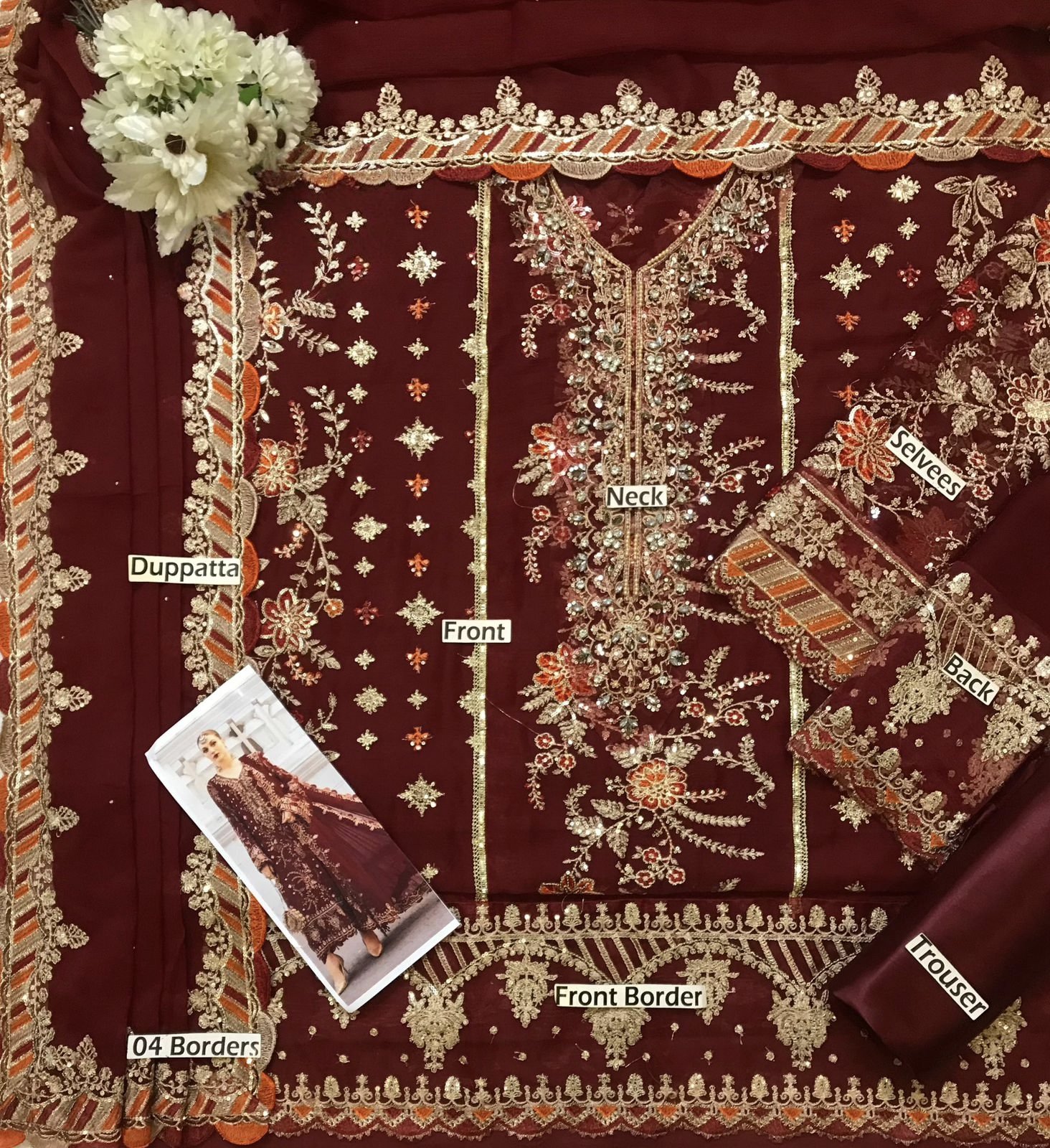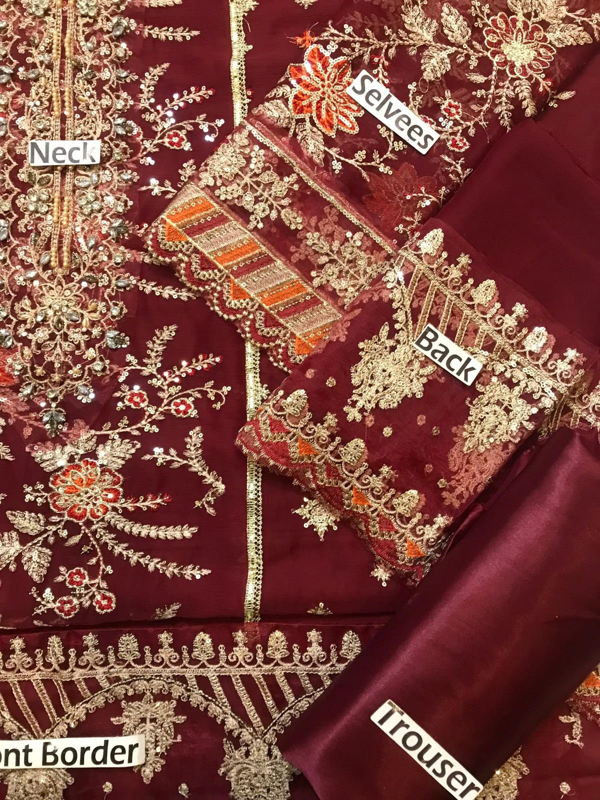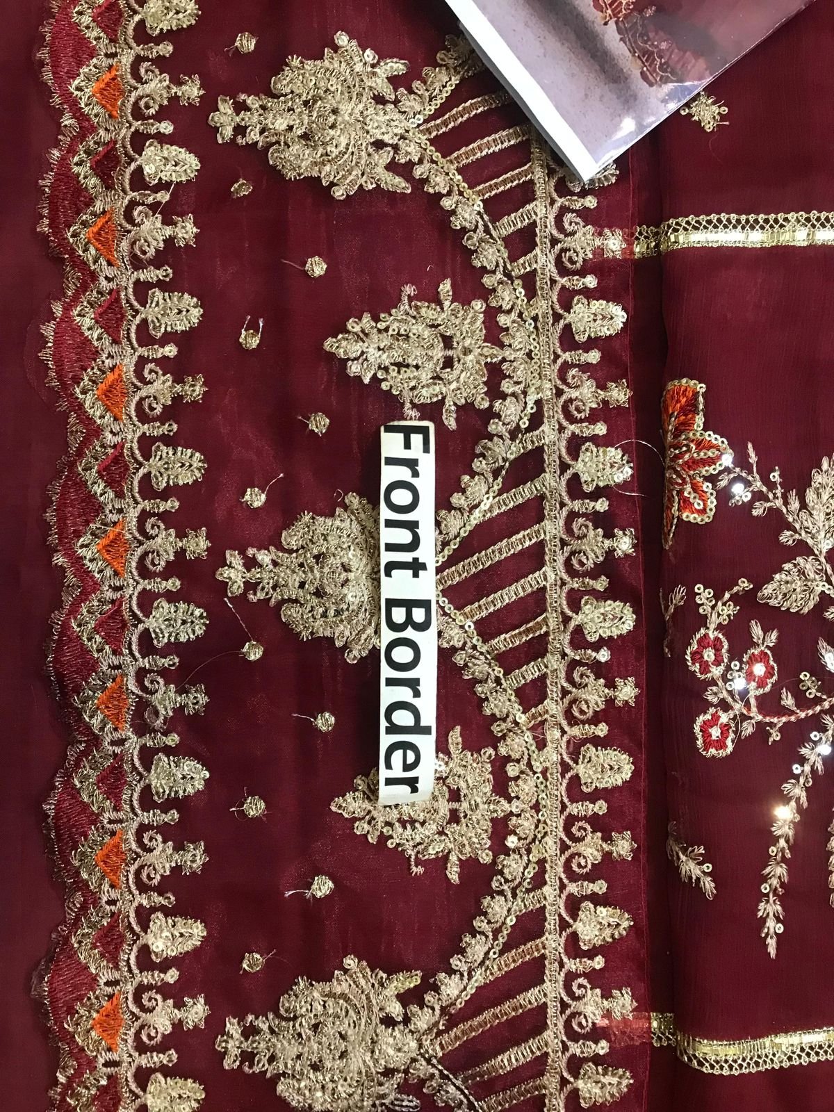 chiffon plain back with heavy embroidered spengle work back daman boarder