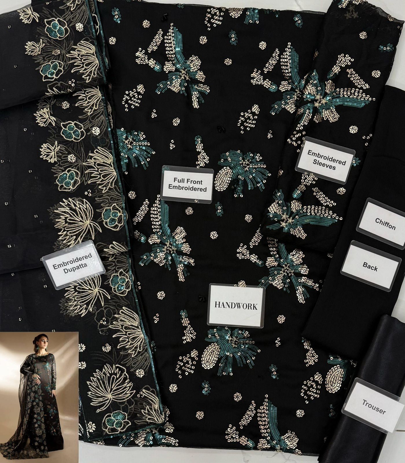 • Embroidered Sequence Work Chiffon Front With Addawork