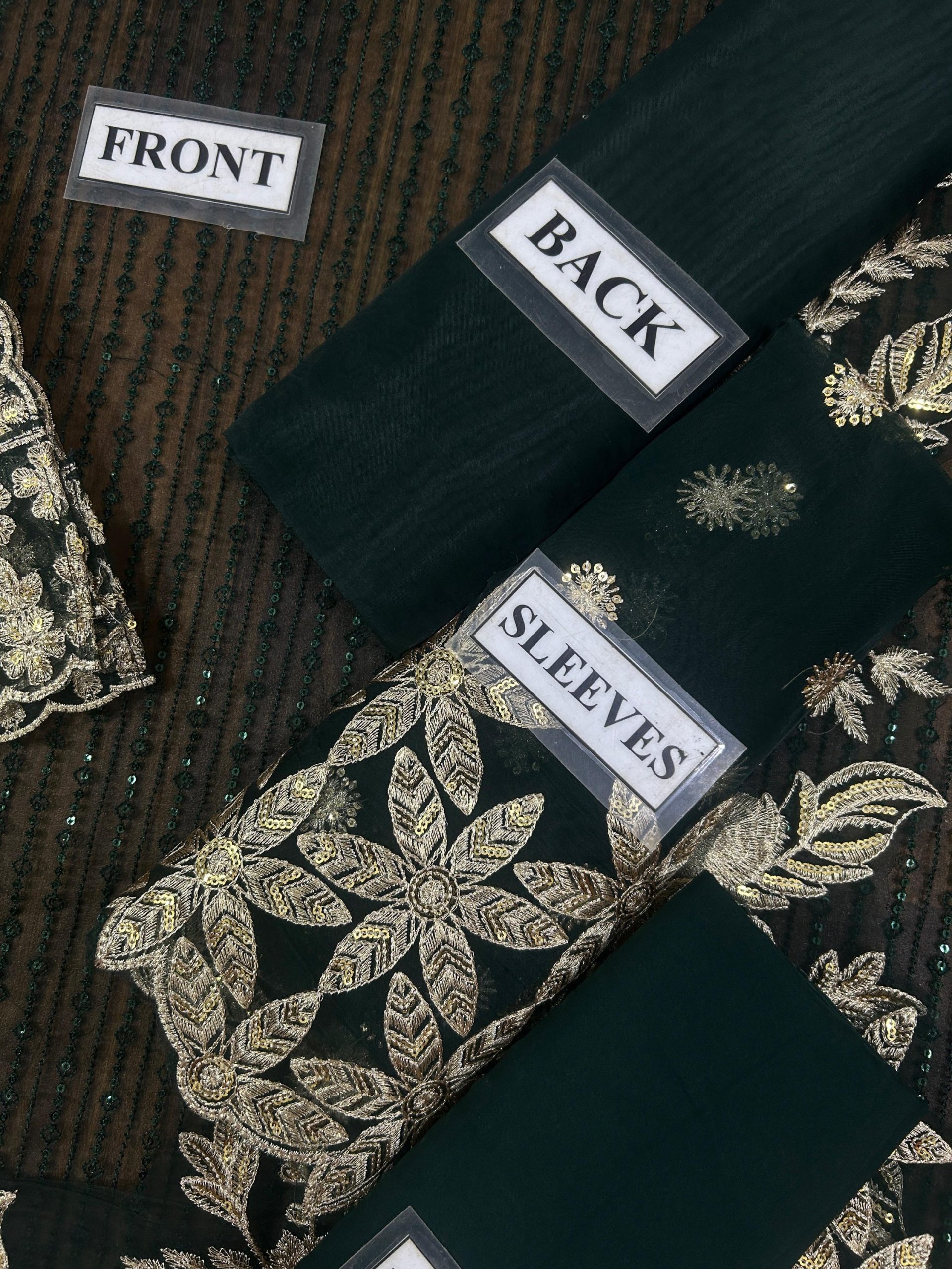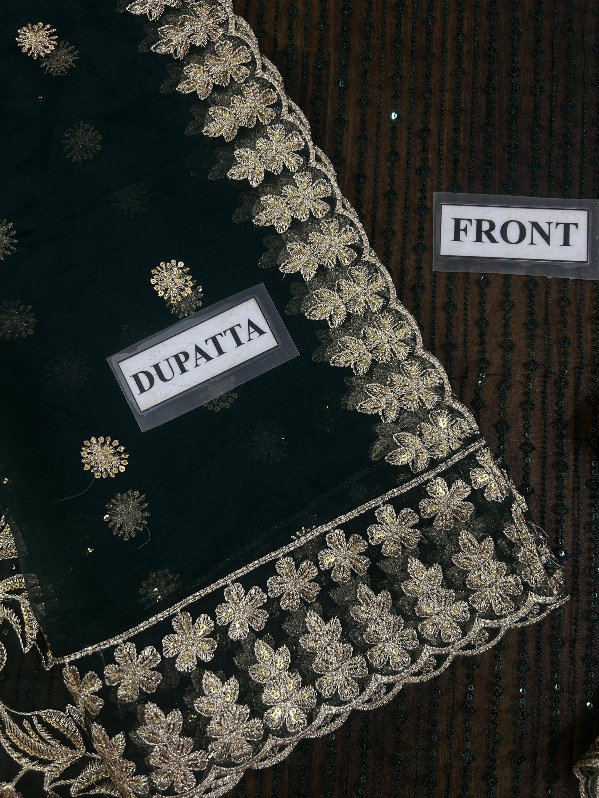 Elegant Luxury Work Unstitched Wedding Partywear Dark green Dress Nikha Walima Engagement Mehndi Mayon Dress