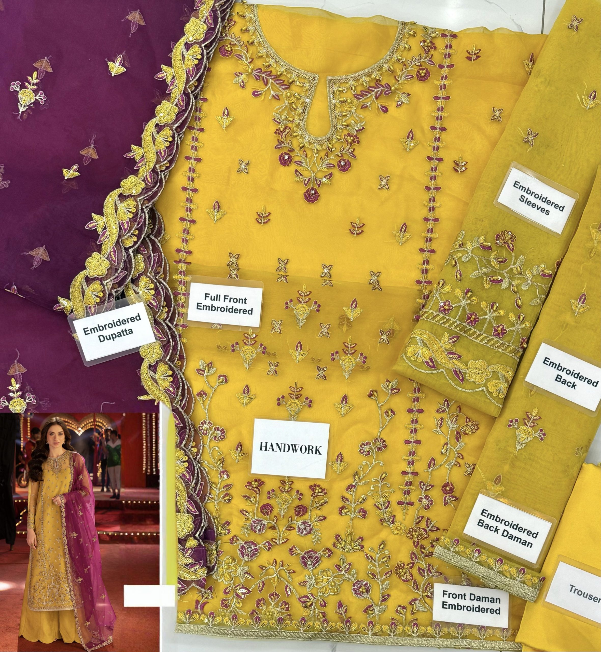 Elegant Luxury Work Unstitched Wedding Partywear Yellow Dress Nikha Walima Engagement Mehndi Mayon Dress