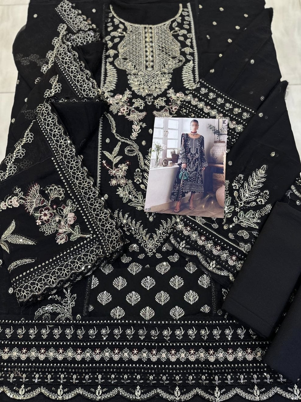 • Dupatta: Fully embroidered & sequinned chiffon with embellished pallu.