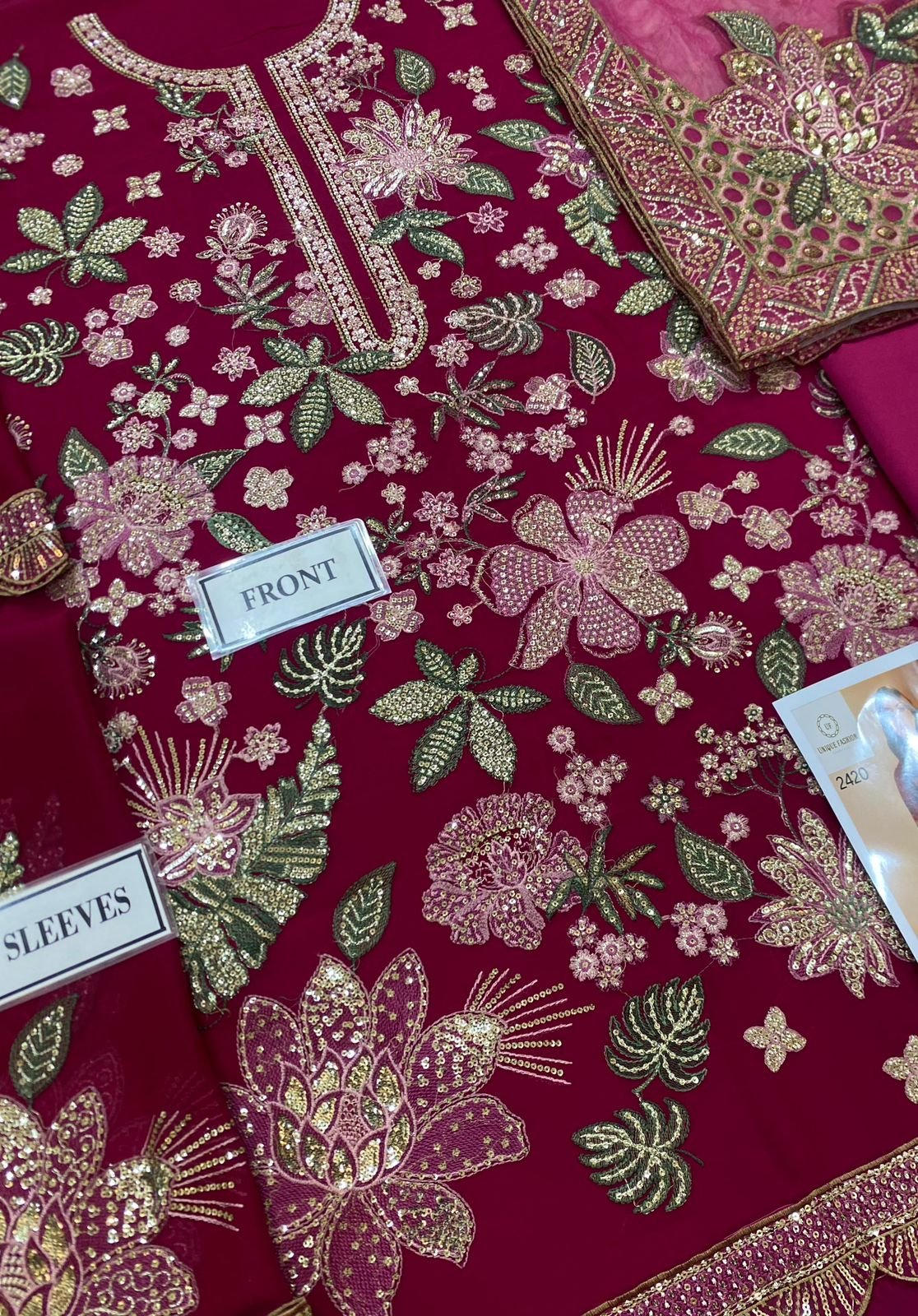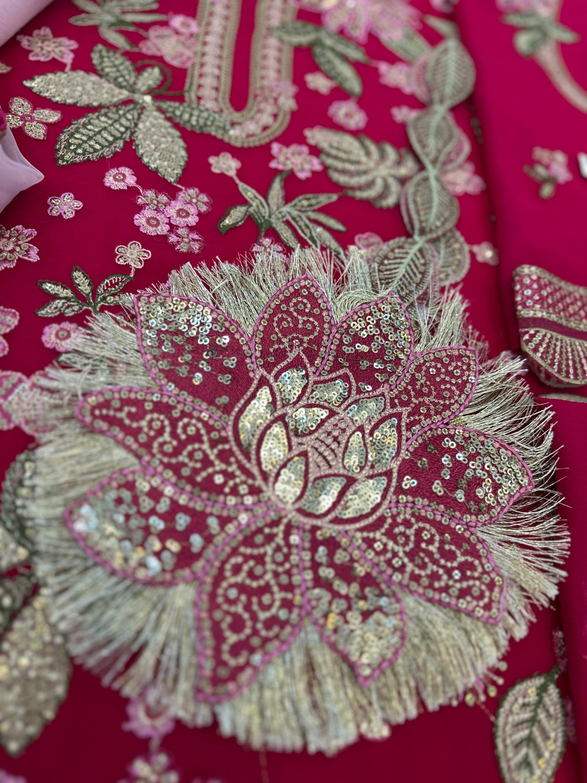 Elegant Luxury Work Unstitched Wedding Partywear Dark Pink Dress Nikha Walima Engagement Mehndi Mayon Dress