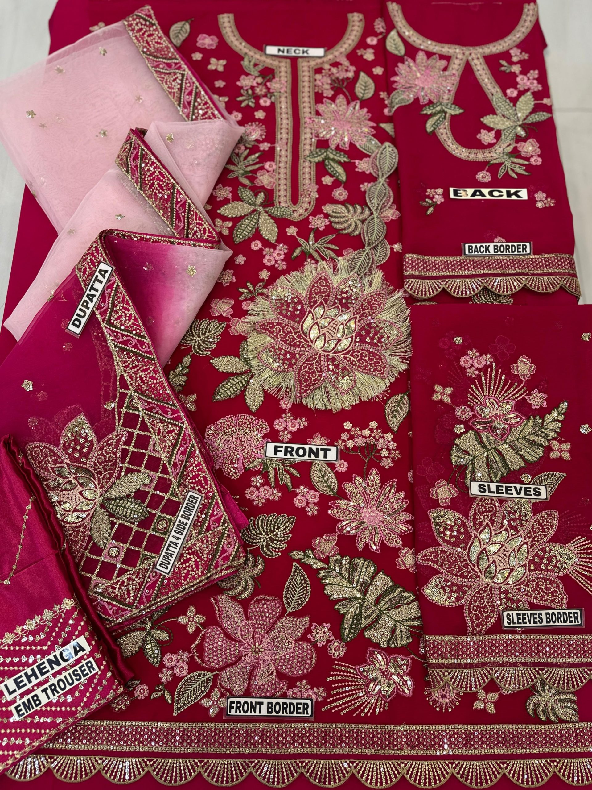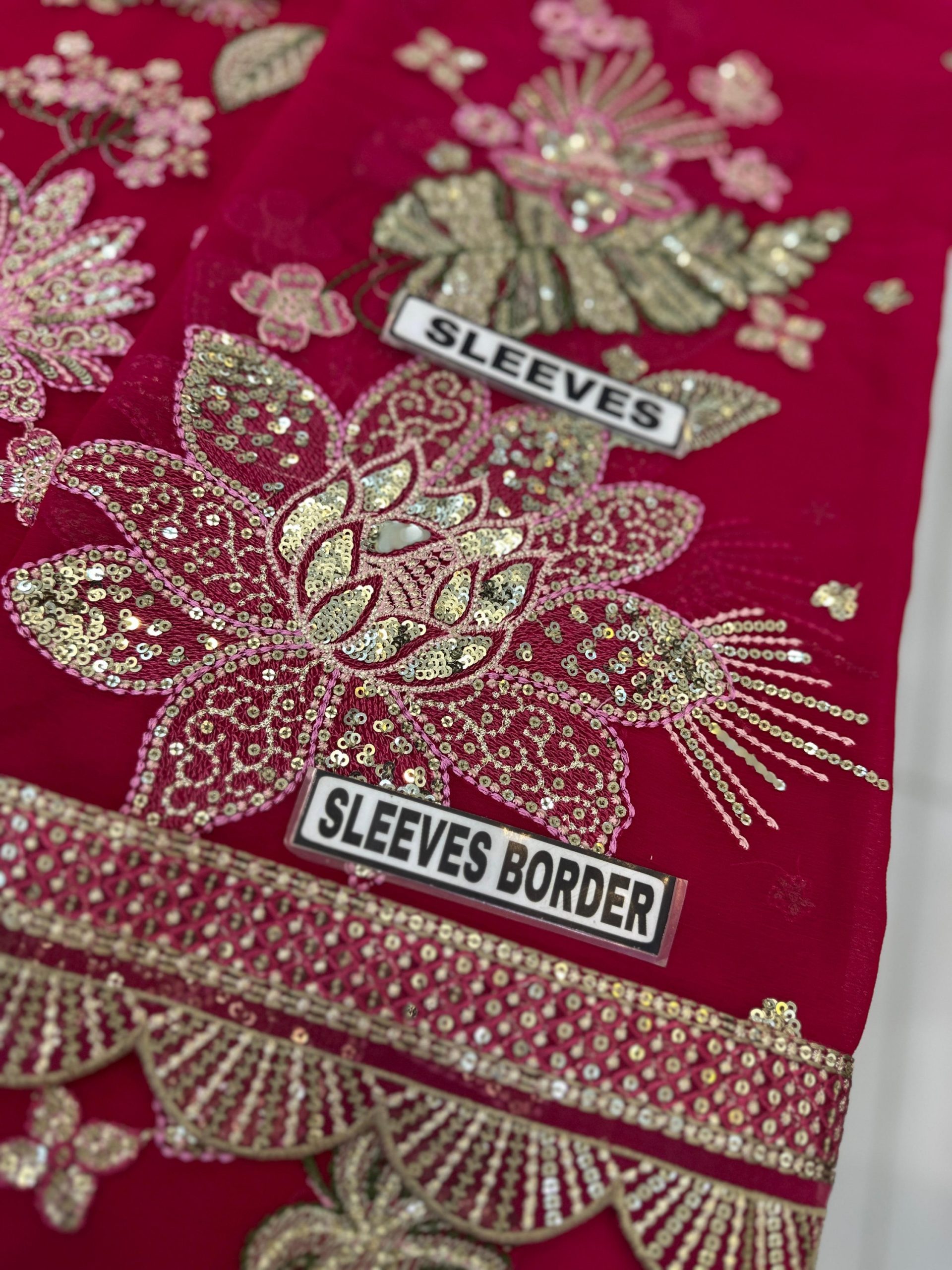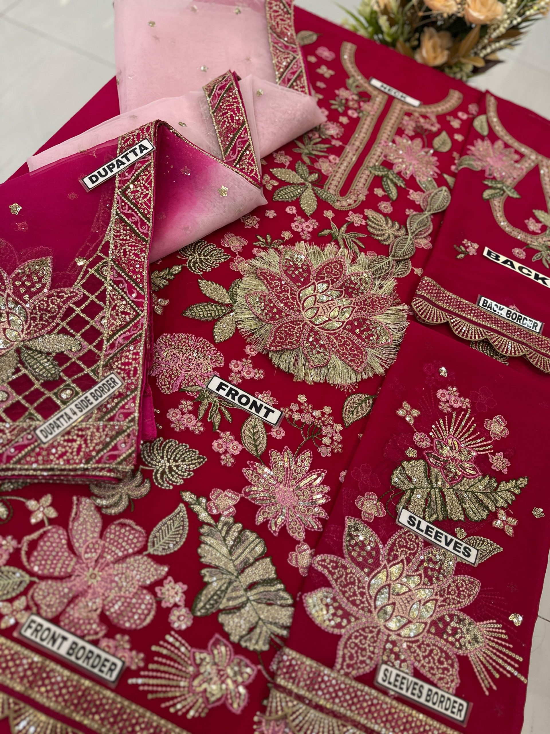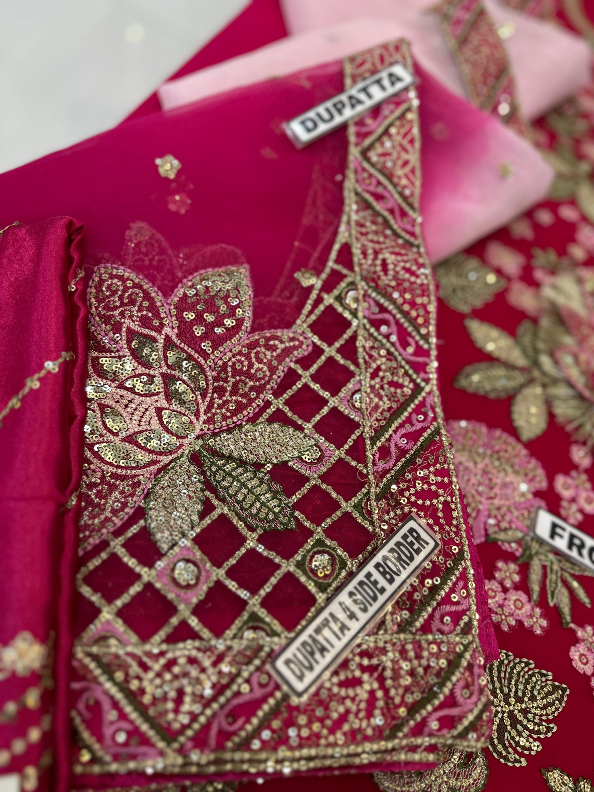 Be the first to review “Elegant Luxury Work Unstitched Wedding Partywear Dark Pink Dress Nikha Walima Engagement Mehndi Mayon Dress” Cancel reply