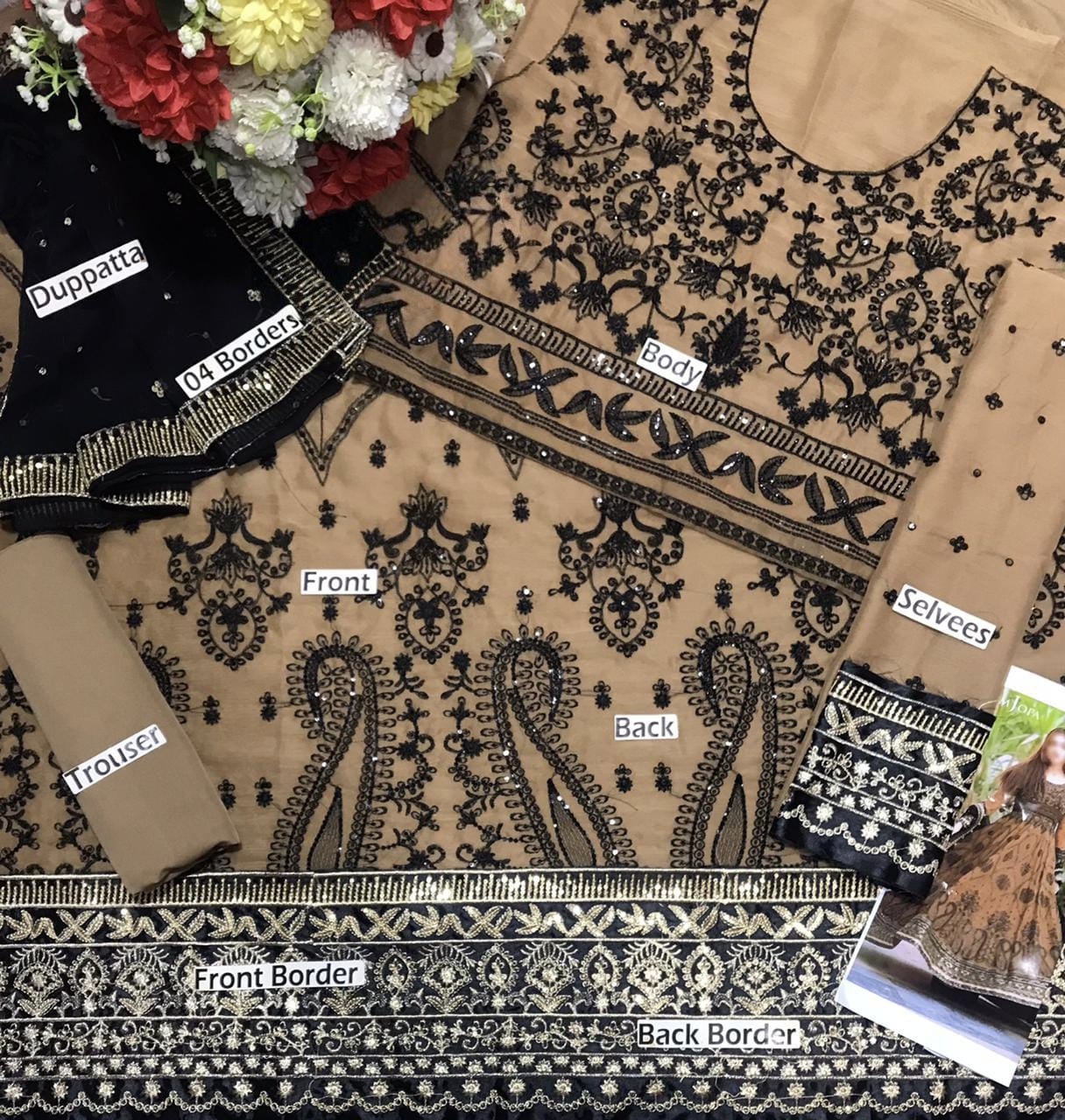 Be the first to review “Elegant Luxury Work Unstitched Wedding Partywear Golden Brown Frok Dress Nikha Walima Engagement Mehndi Mayon Dress”
