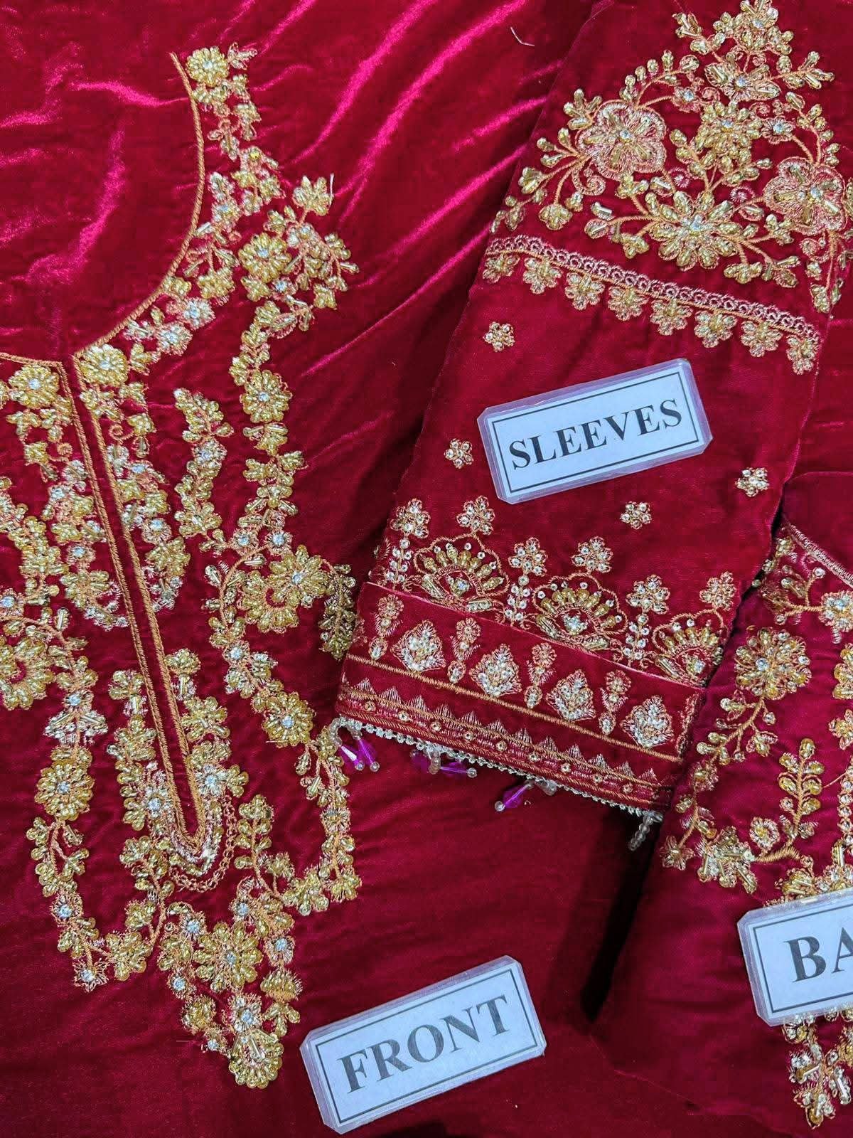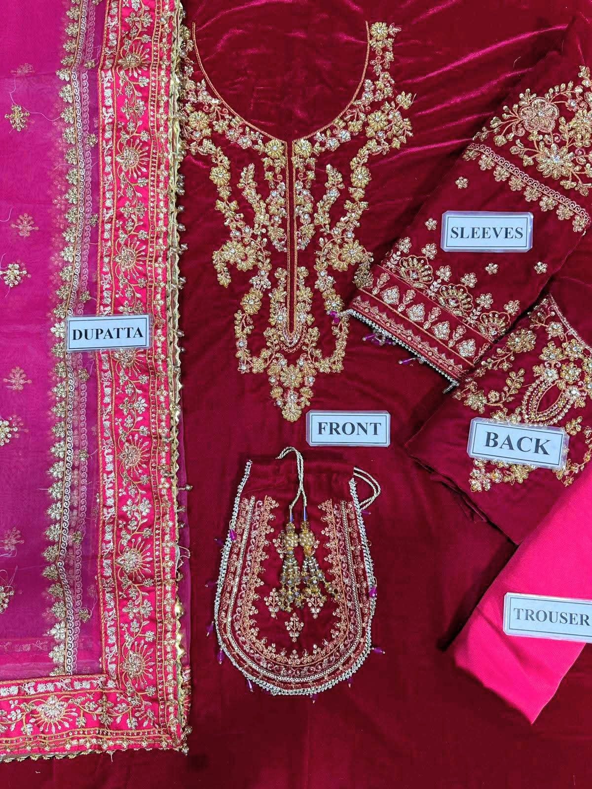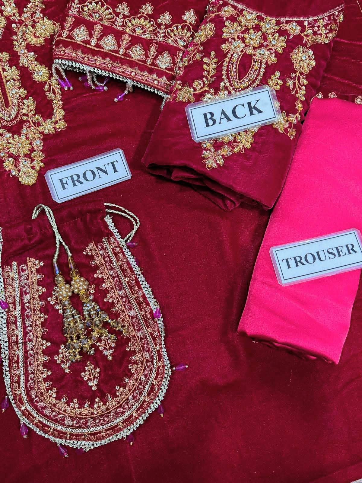 Velvet Elegant Luxury Work Unstitched Wedding Partywear Dark Pink Winter Dress Nikha Walima Engagement Mehndi Mayon Dress