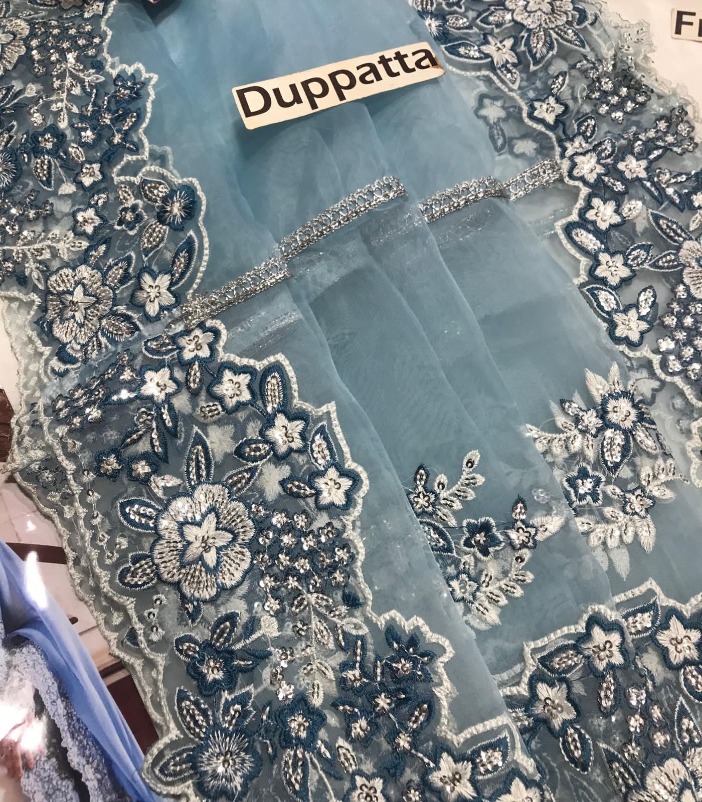 ▪️Heavy Embroidery Organza Dupatta With 04 Sides Heavy Embroidered border Applic Ready To Wear Duaptta
