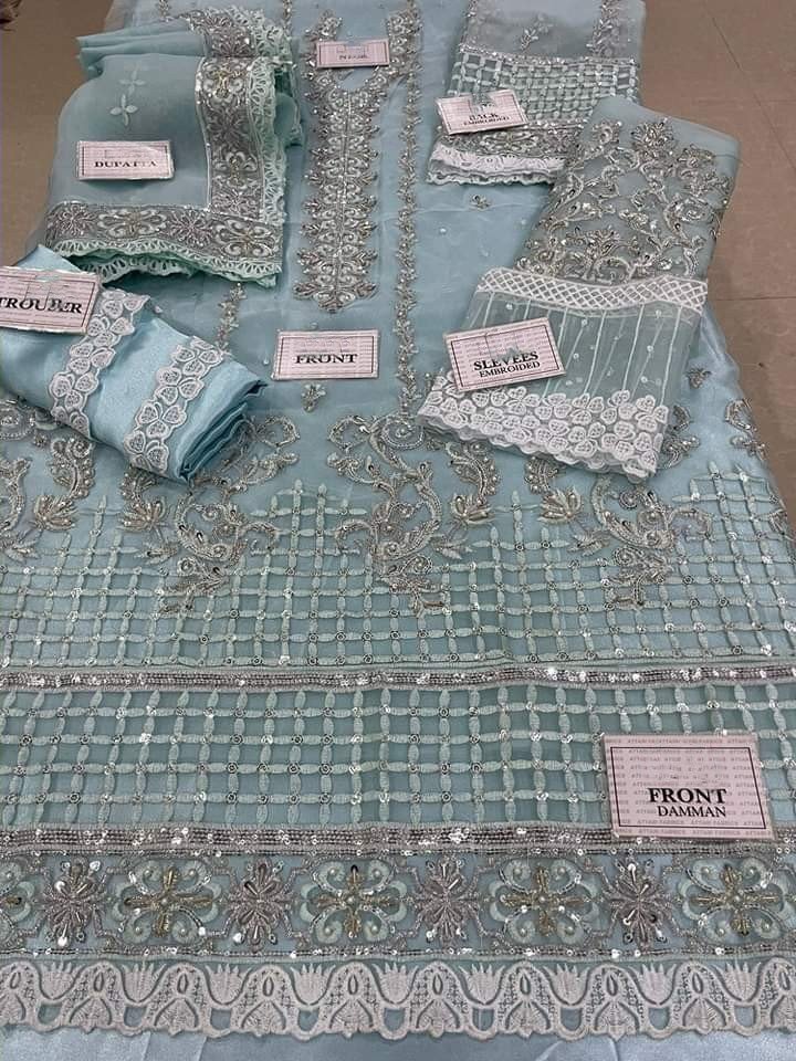 Front Organza Sequence Embroidered & Adda Work
