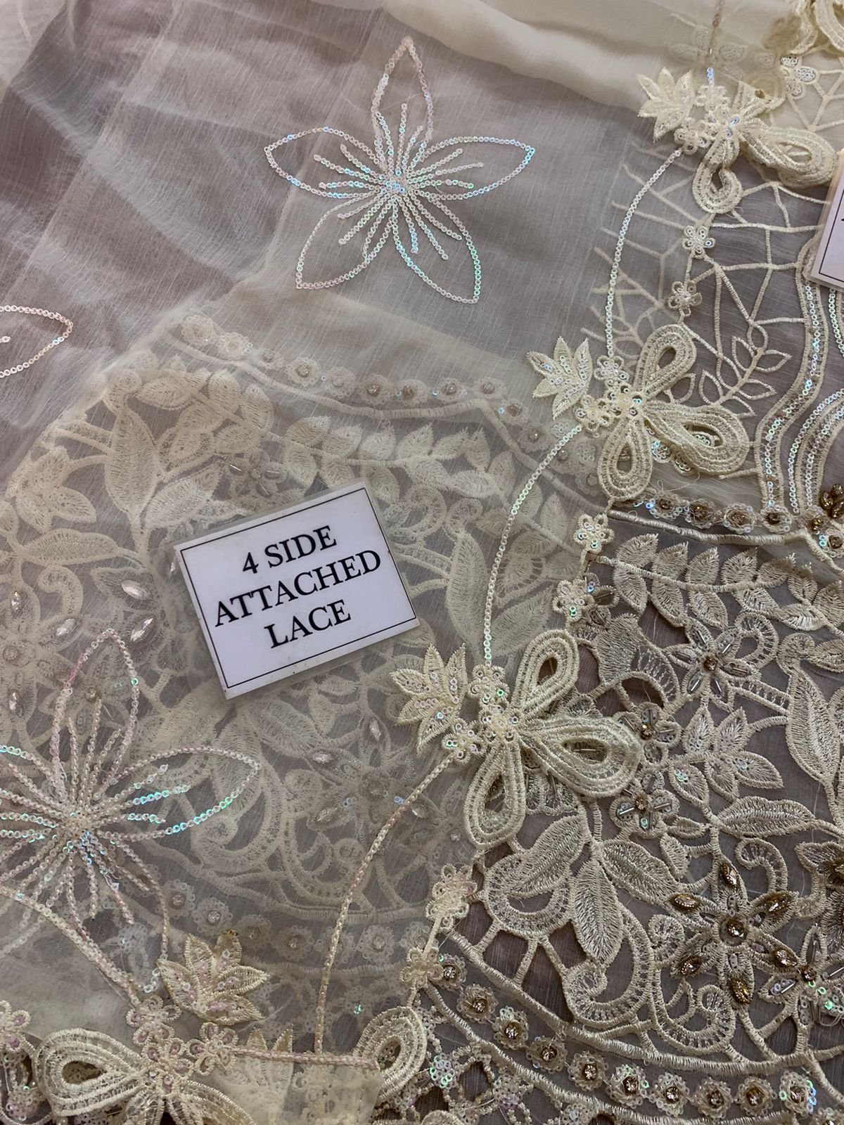 Chiffon Embroidered slevees full heavey adda work With Organza patch Attached