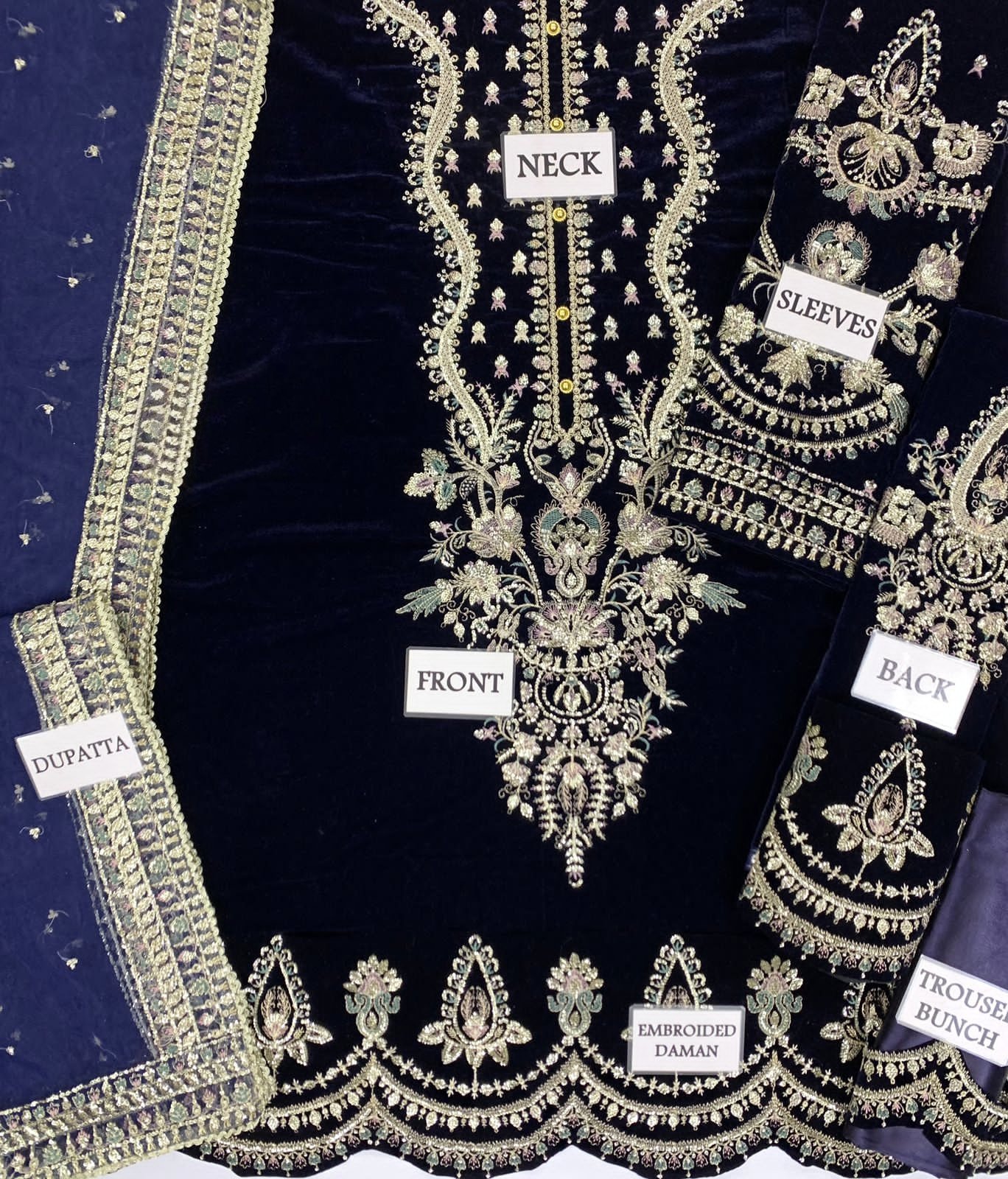 Velvet Elegant Luxury Work Unstitched Wedding Partywear Winter Navy Blue Dress Nikha Walima Engagement Mehndi Mayon Dress