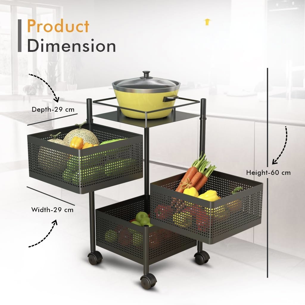 Kitchen Trolley Kitchen Organizer Kitchen Storage Rack Square Design Fruits & Vegetable Onion Cutlery Jars Container Kitchen Trolley with Wheels (3 Layer)