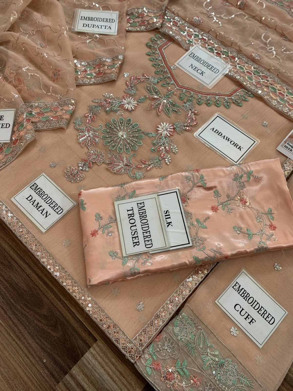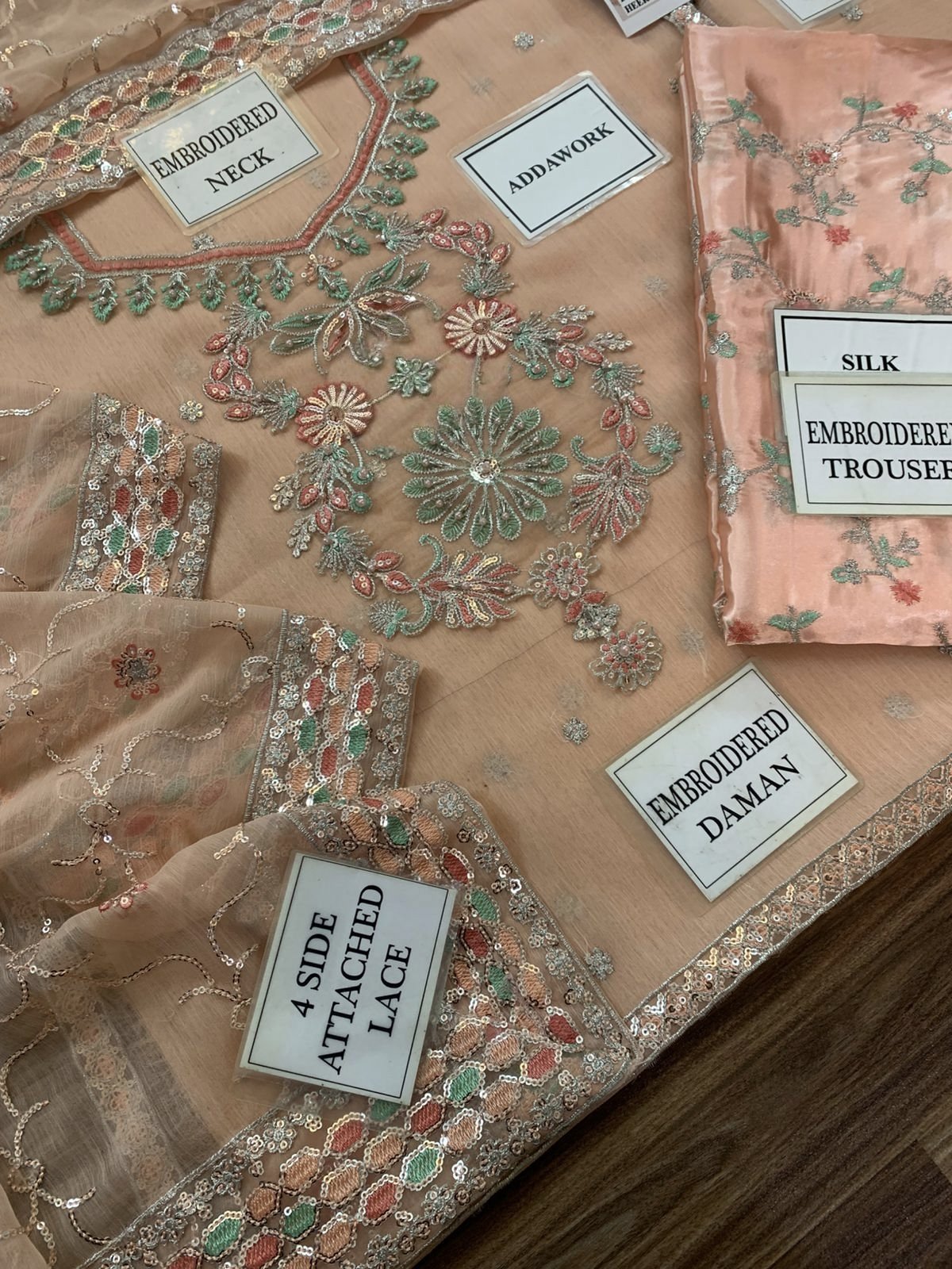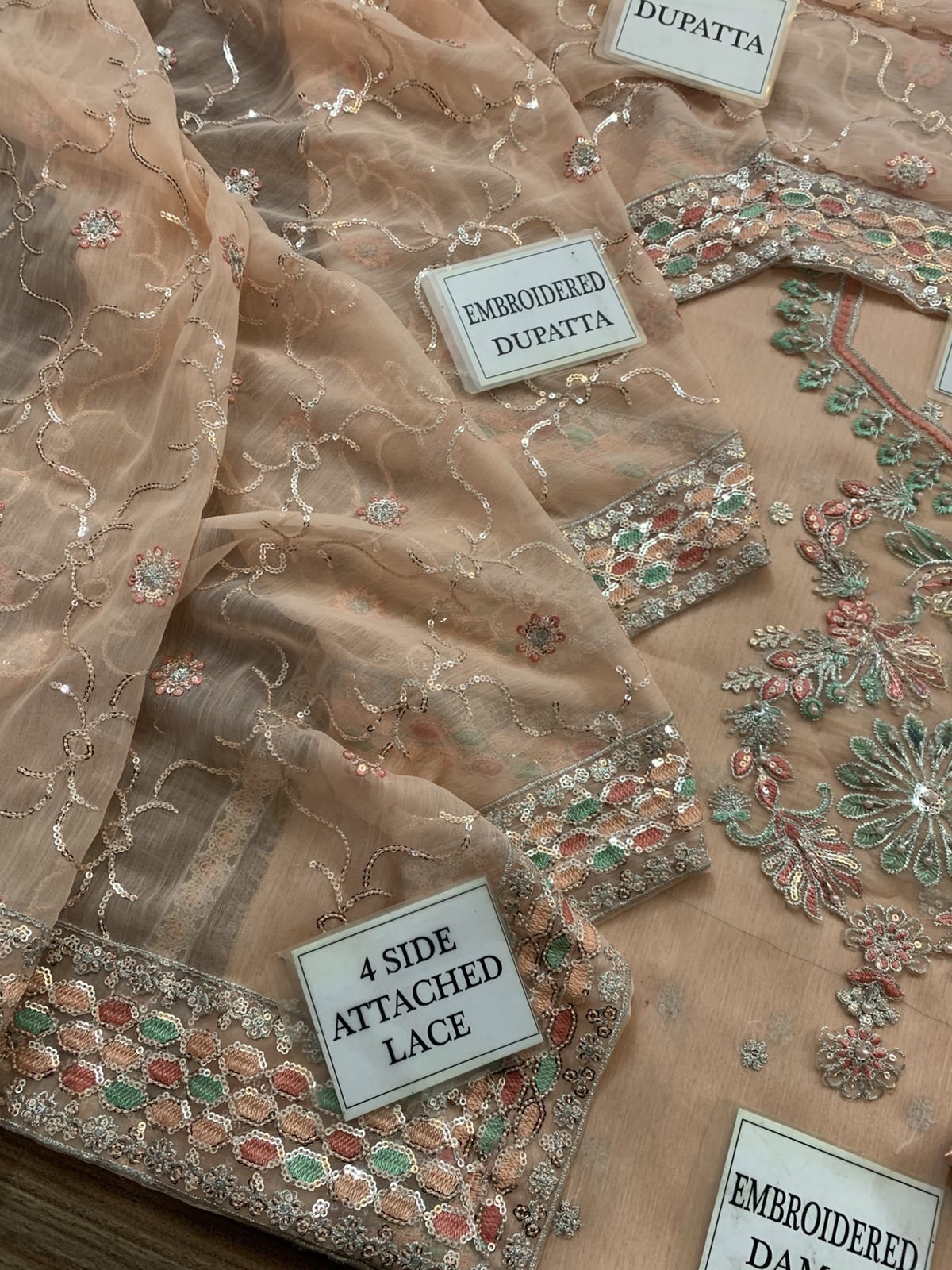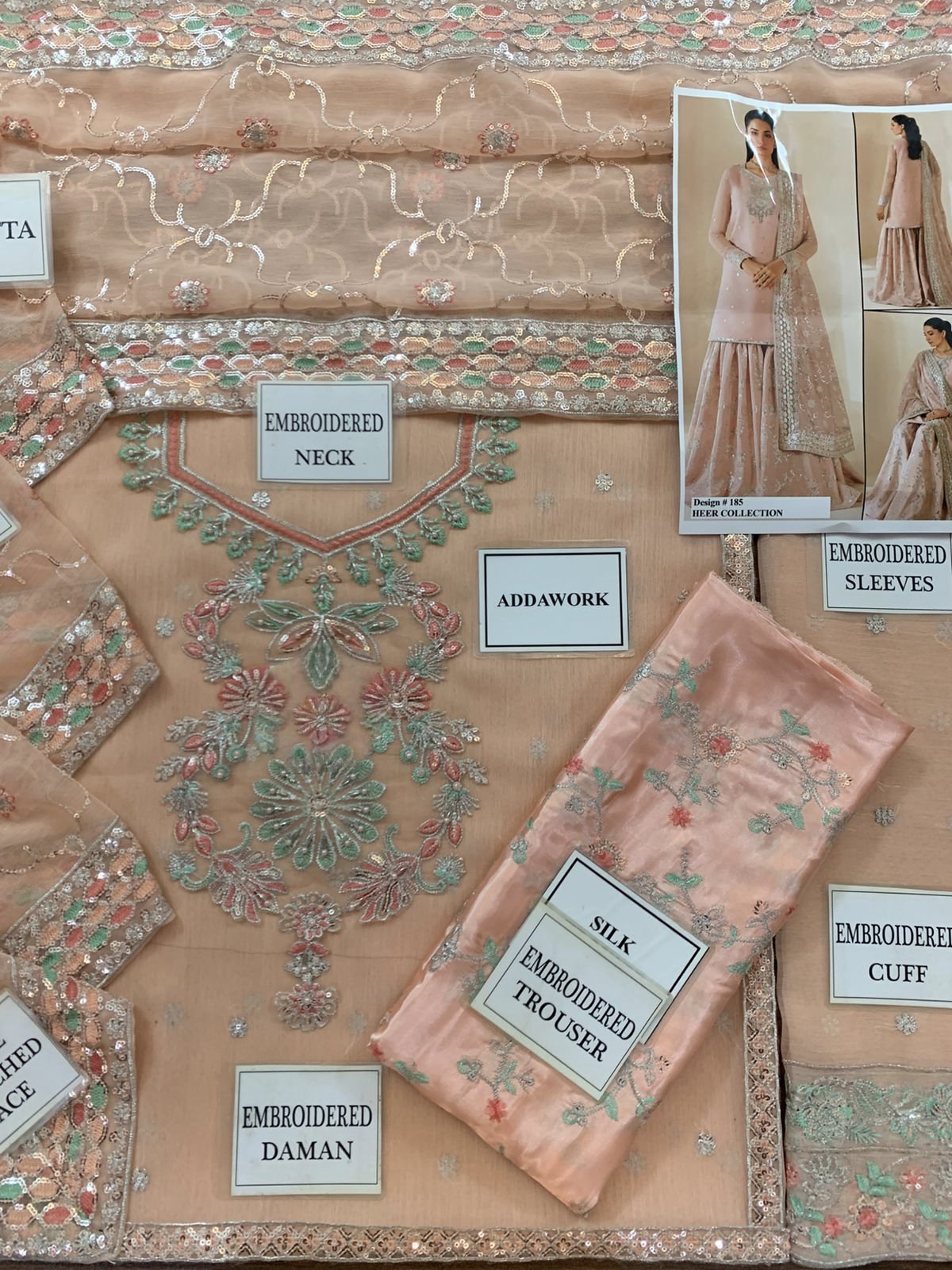 •Chiffon Sleeves Sequence Embroidered With Heavy Embroidered Cuff