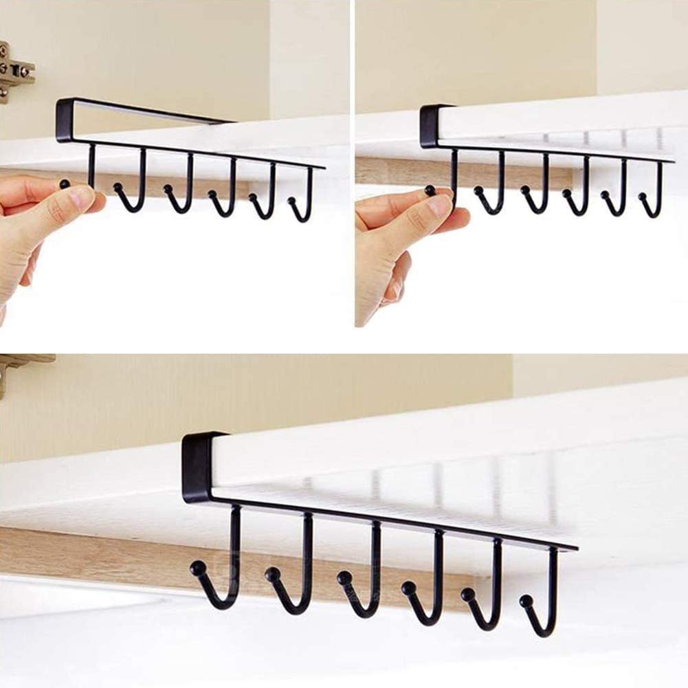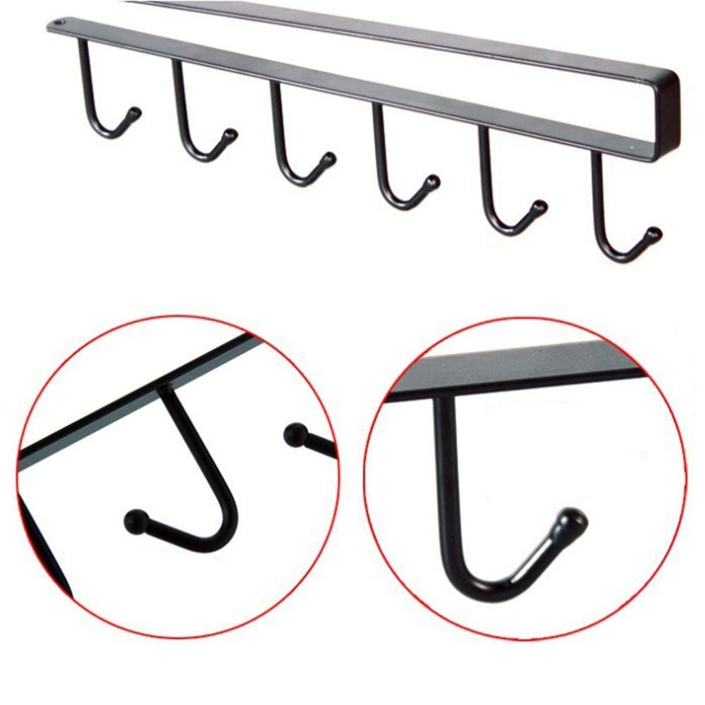 Metal Kitchen Cutlery Organizer Mug Holder Cup Stand Holder Cabinet Door 6 Hooks