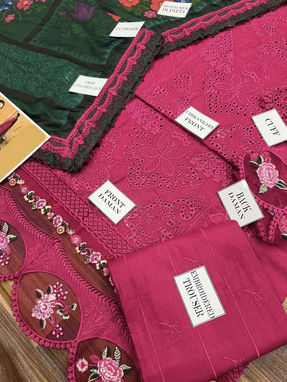 Be the first to review “Elegant Summer Luxury Embroidery Unstitched Lawn cotton Pink Dress” Cancel reply