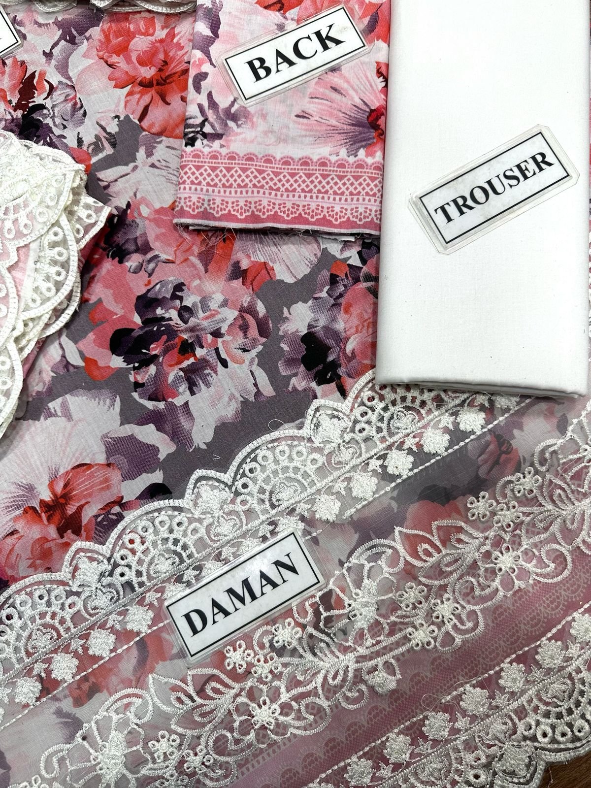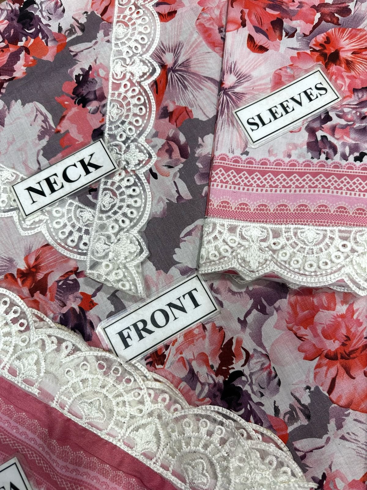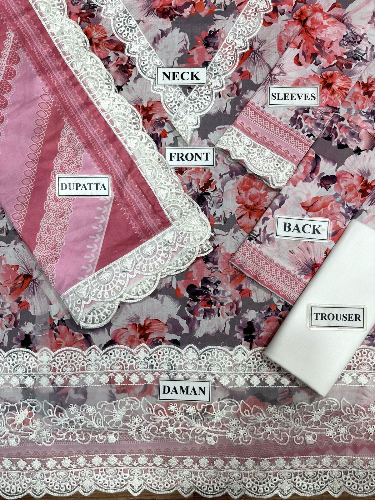 Elegant Summer Printed Embroidery Unstitched Lawn Dress