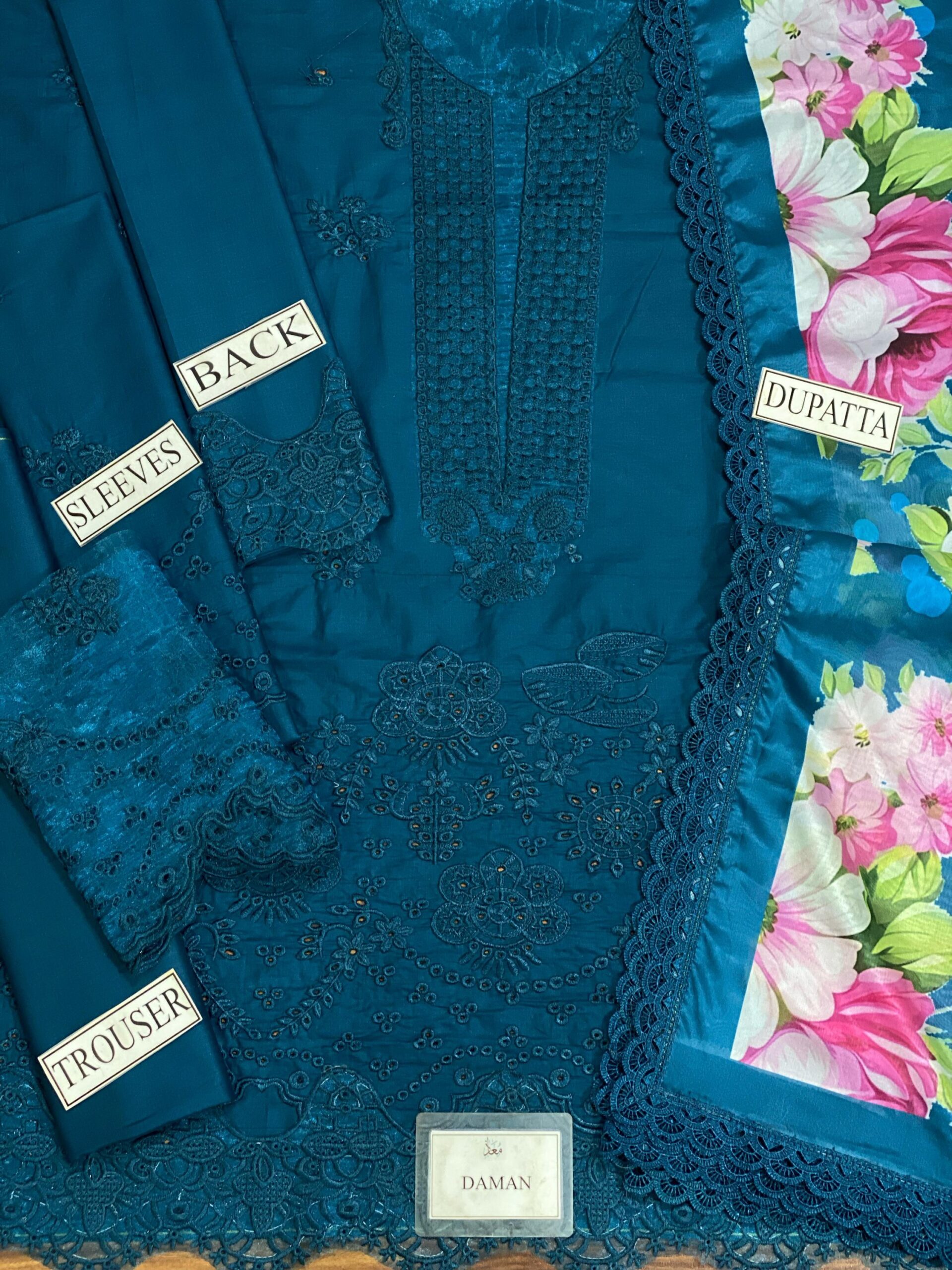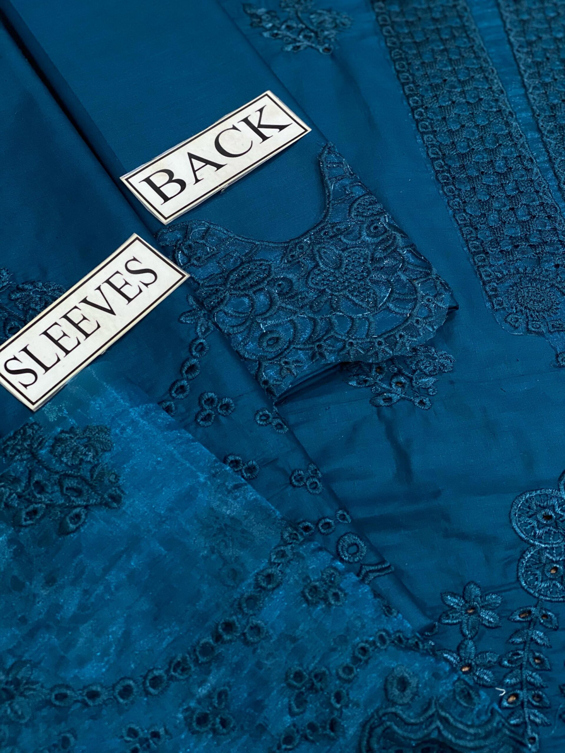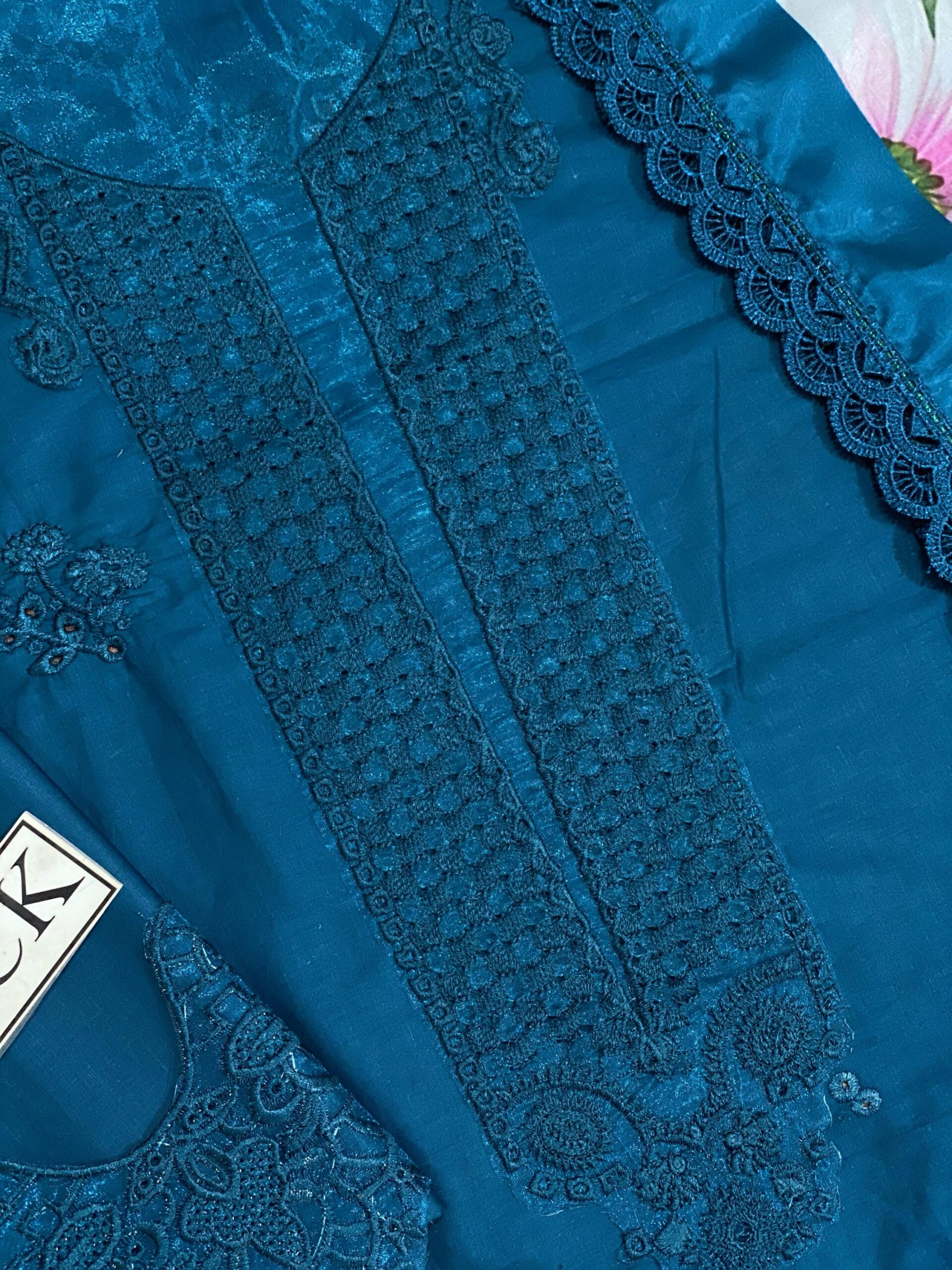 Be the first to review “Elegant Summer Luxury Embroidery Unstitched Chikankari Lawn Cotton Teal Dress” Cancel reply