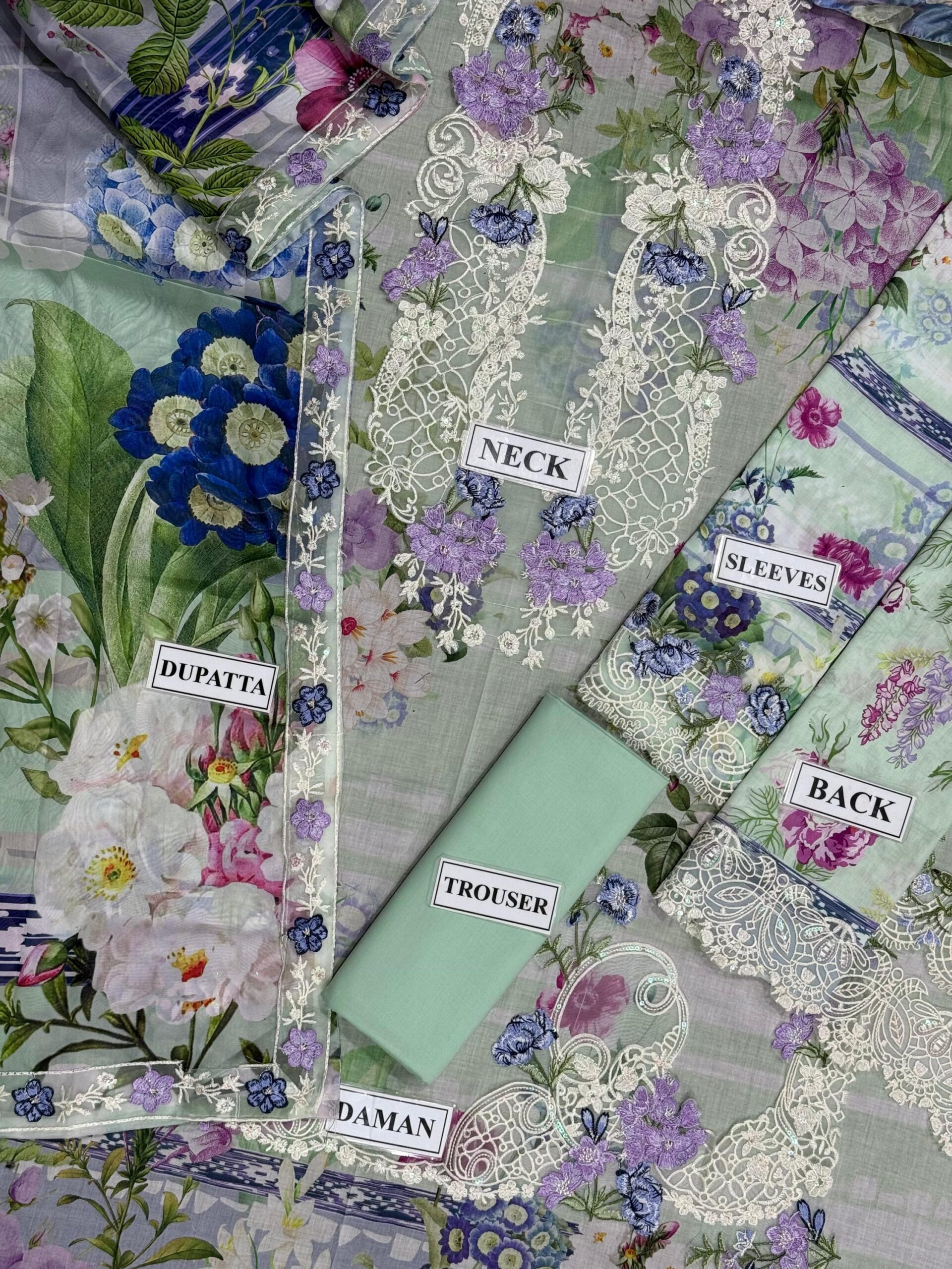 • Lining, Laces, and Tassels are not included in unstitched variants.