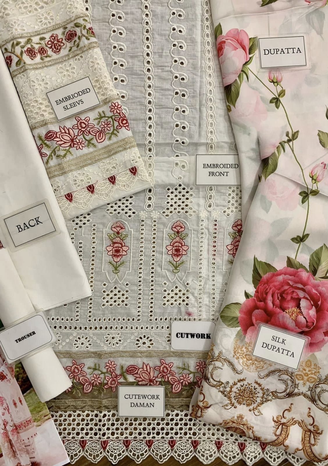 Elegant Summer Luxury Embroidery Unstitched white Dress