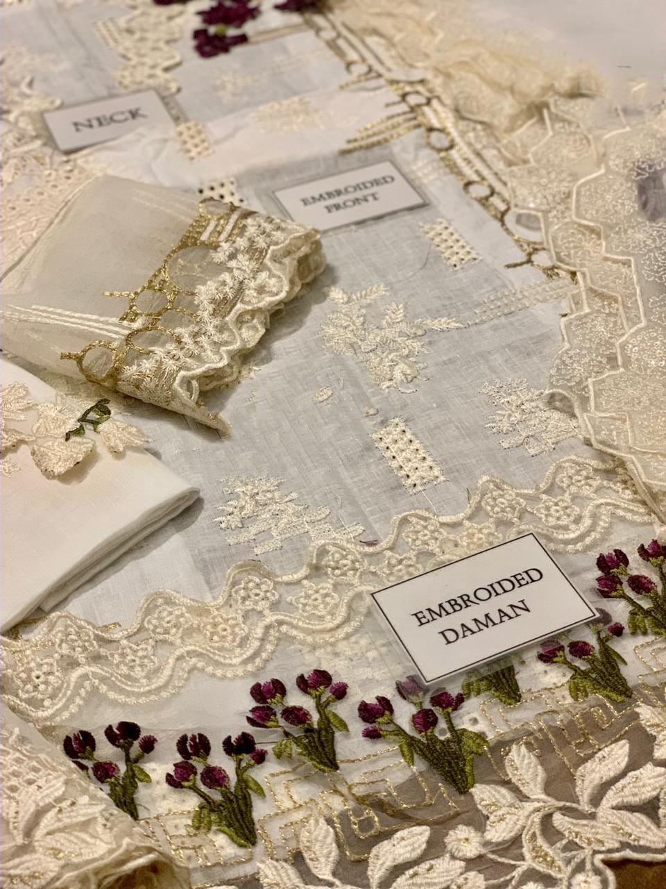 Elegant Summer Luxury Embroidery Unstitched Off-White Lawn Dress