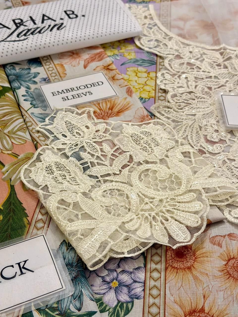 - Printed lawn sleeves with heavy embroidered spengle work sleeves bunches