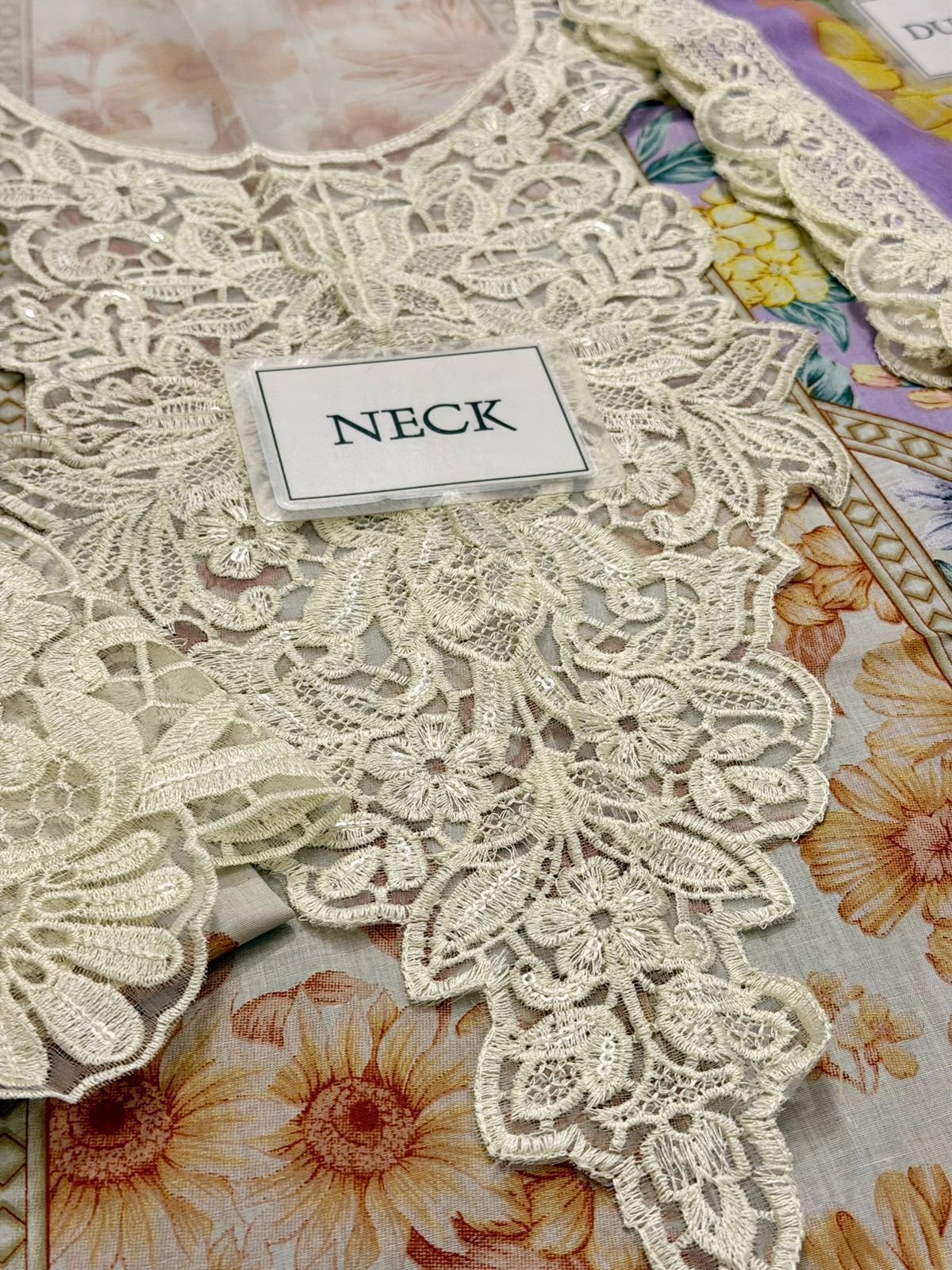 - printed lawn front with heavy embroidered spengle work neckline with heavy embroidered spengle work daman boarder