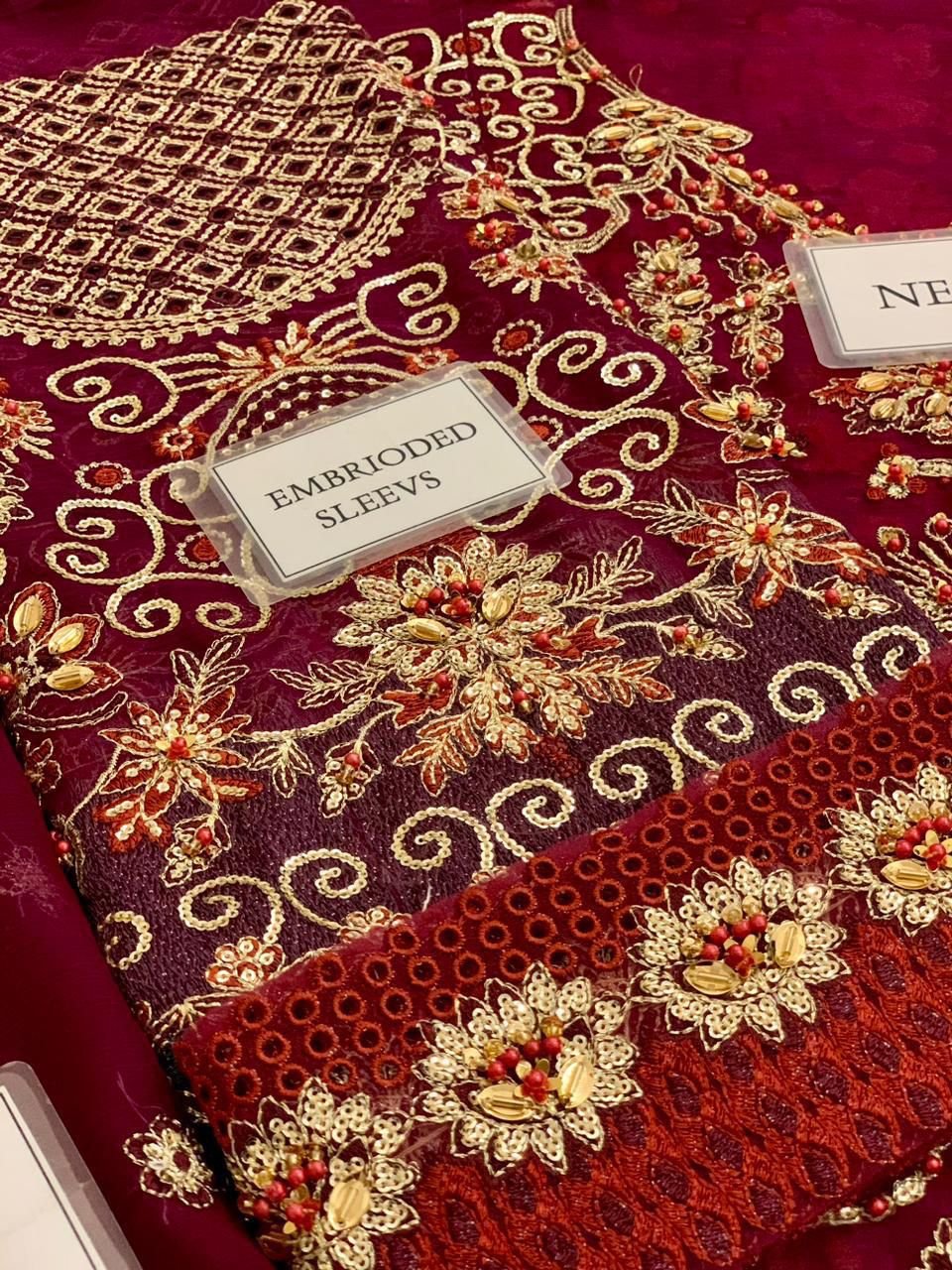 chiffon fully heavy alternet embroidered spengle work sleeves with fully hand emblishment adha work with heavy embroidered spengle work sleeves boarder
