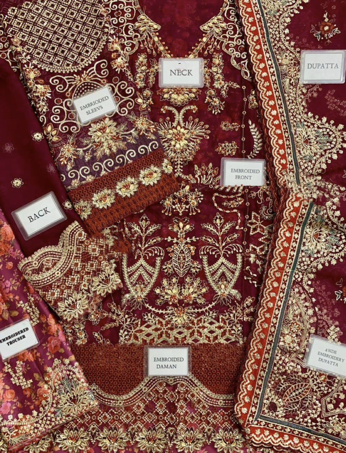 chiffon fully embroidered spengle work back with heavy embroidered spengle work back daman boarder