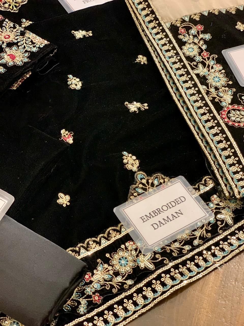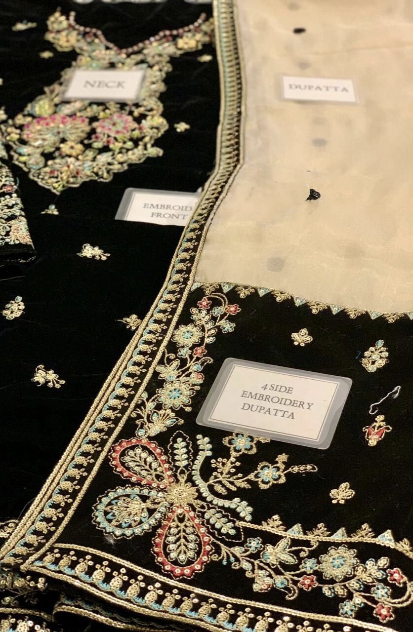 Velvet Elegant Luxury Work Unstitched Wedding Partywear Winter black Dress Nikha Walima Engagement Mehndi Mayon Dress