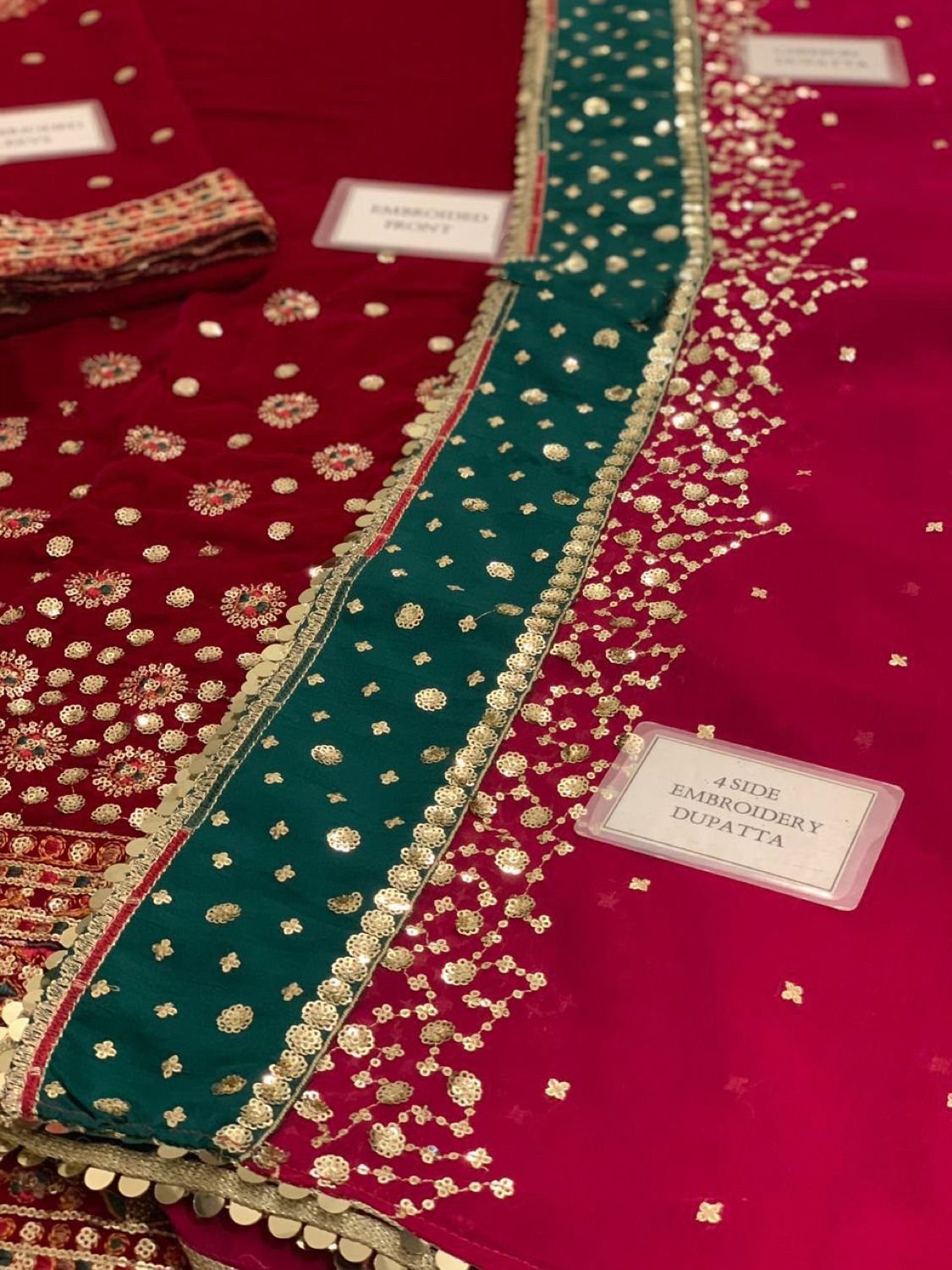 Velvet fully heavy embroidered spengle work front with fully heavy velvet embroidered spengle work daman boarder with embroidered spengle work soldier bunches