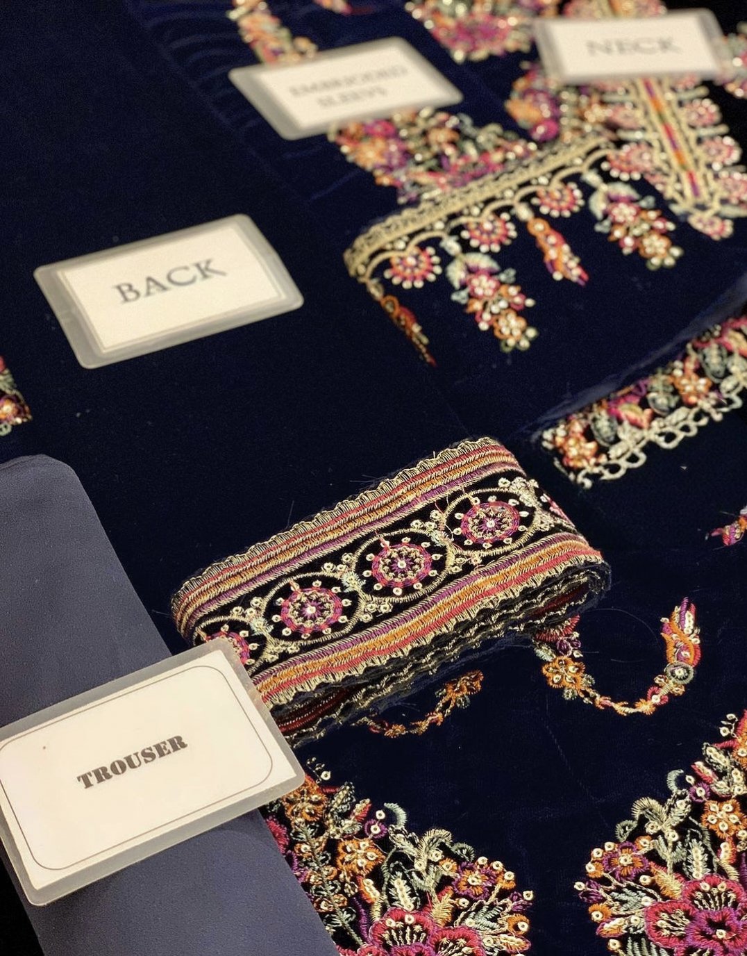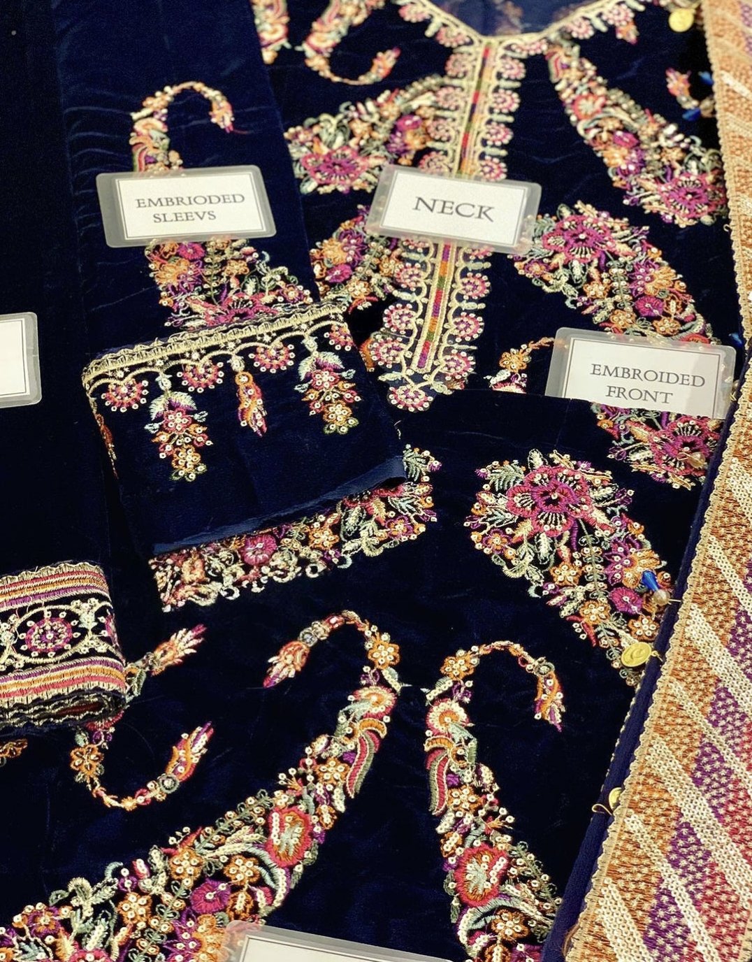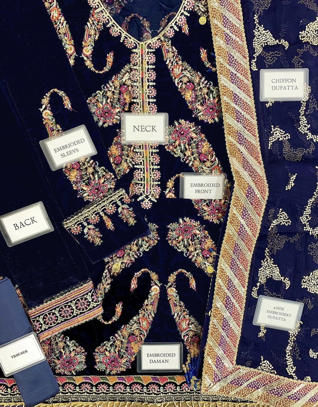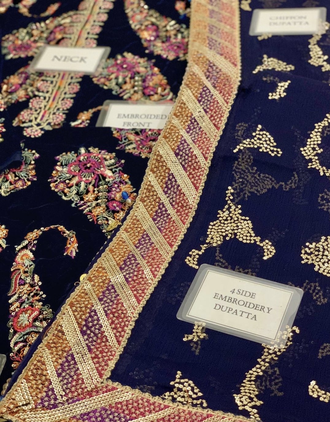 Velvet Elegant Luxury Work Unstitched Wedding Partywear Winter Navy Blue Dress Nikha Walima Engagement Mehndi Mayon Dress