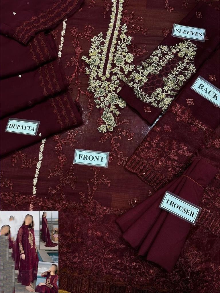 Elegant Luxury Work Unstitched Wedding Partywear Maroon Dress Nikha Walima Engagement Mehndi Mayon Dress