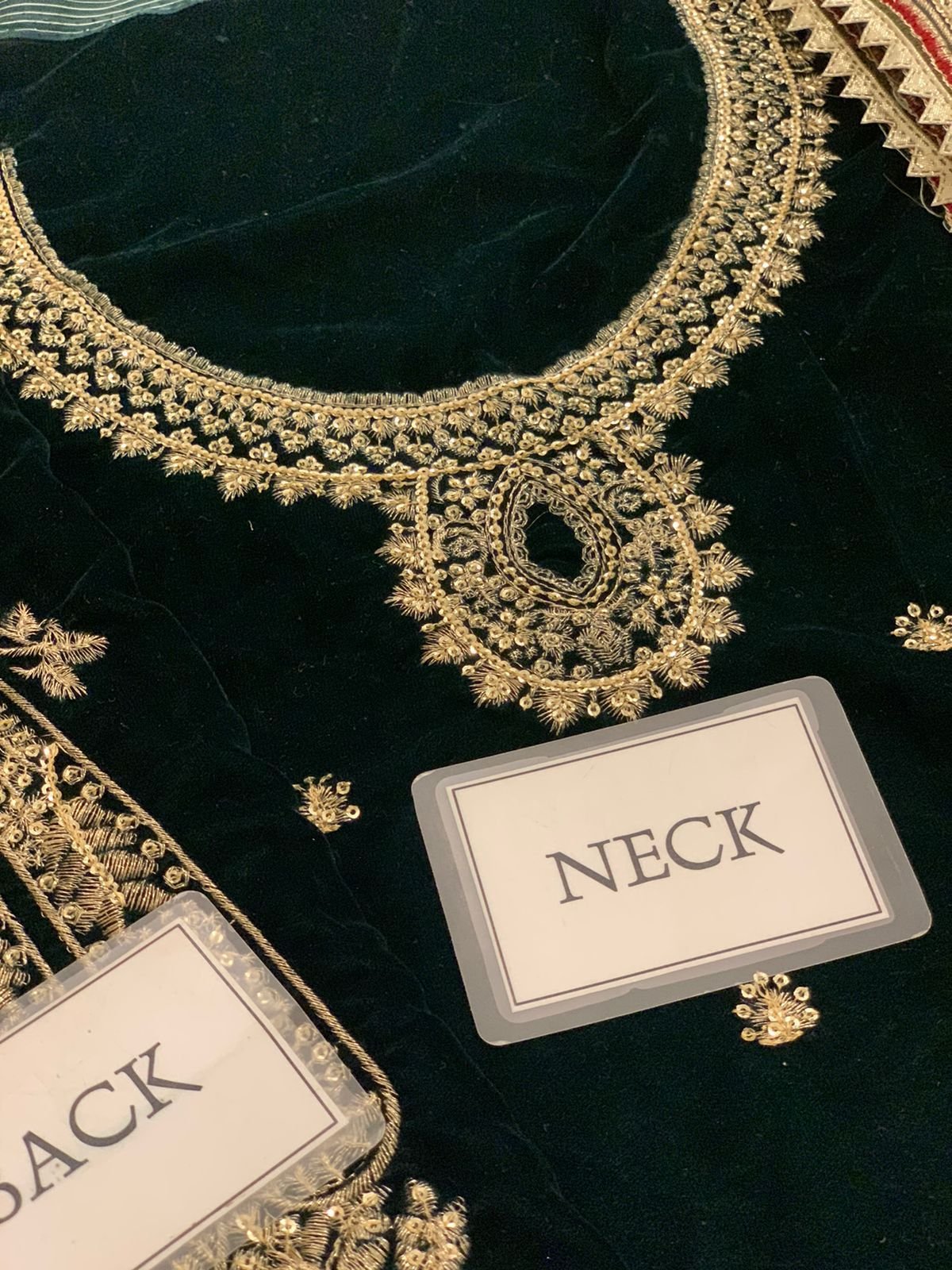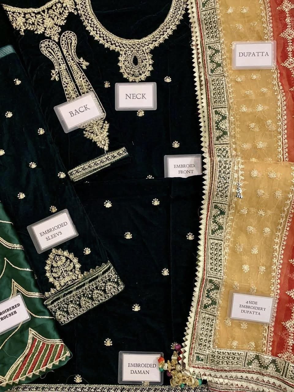 Velvet fully heavy alternet embroidered spengle work front with embroidered spengle work daman lace